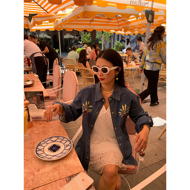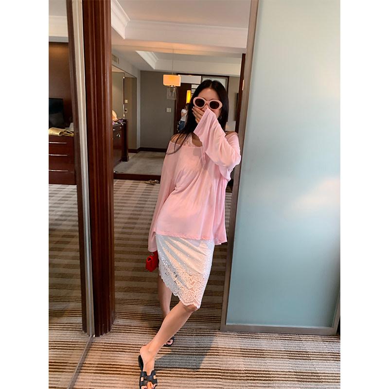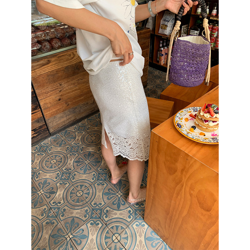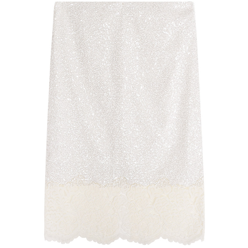 落落狷介 白色半身裙女2025新款亮片刺绣开衩a字裙小个子蕾丝裙