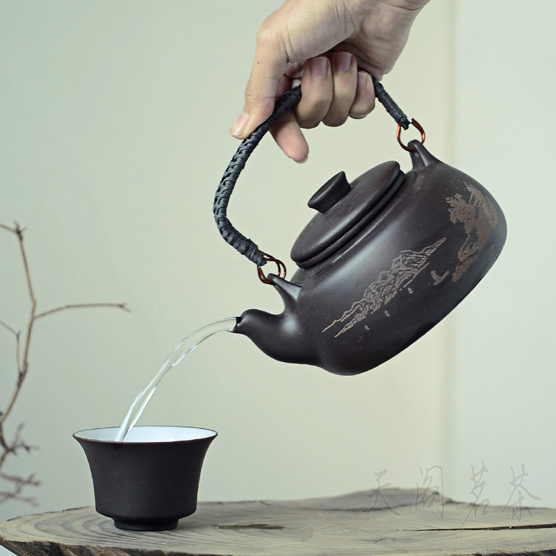 宜兴大号紫泥洋桶壶茶具茶壶带内胆紫砂壶提梁壶家用茶具酒店摆件
