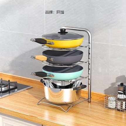 304不锈钢锅架 炒锅放锅架子4层家用锅具置物架多层可免打孔