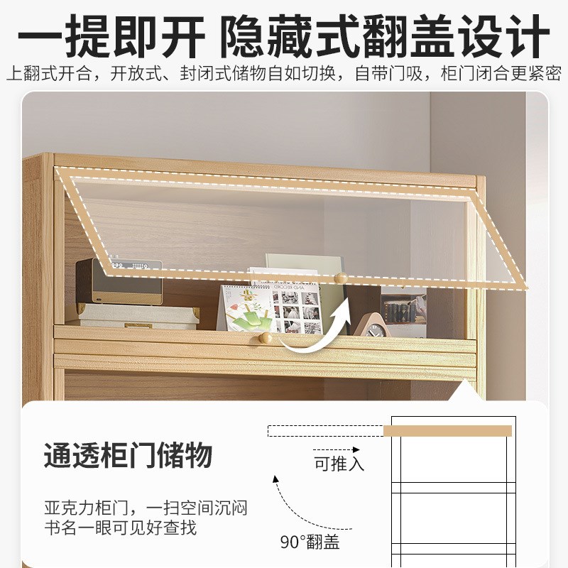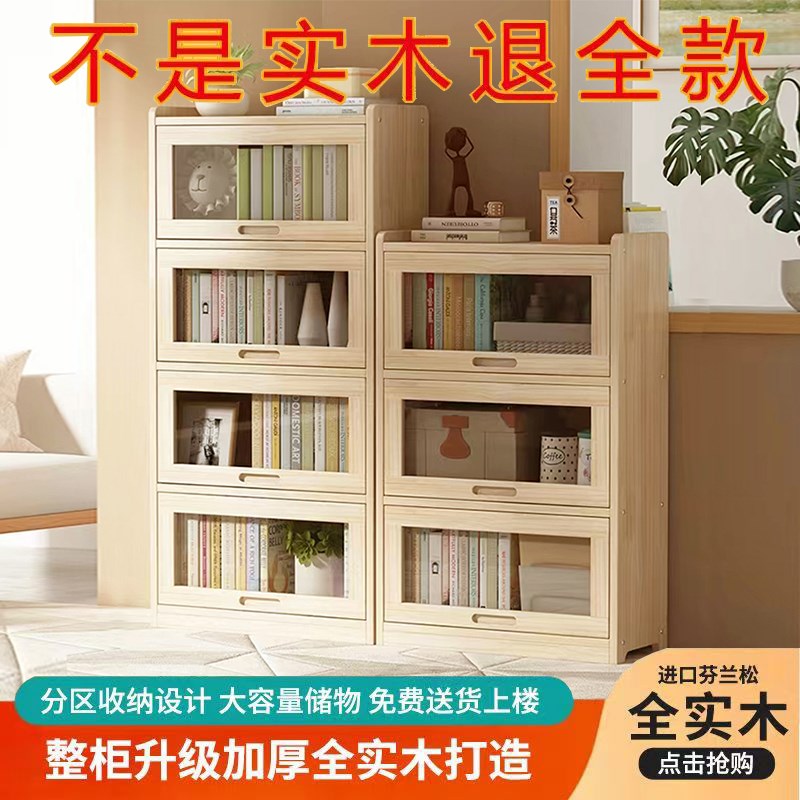 松木书架全实木落地置物架防尘储物柜有机玻璃门移动自由组合书柜