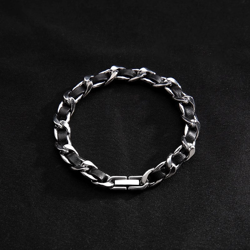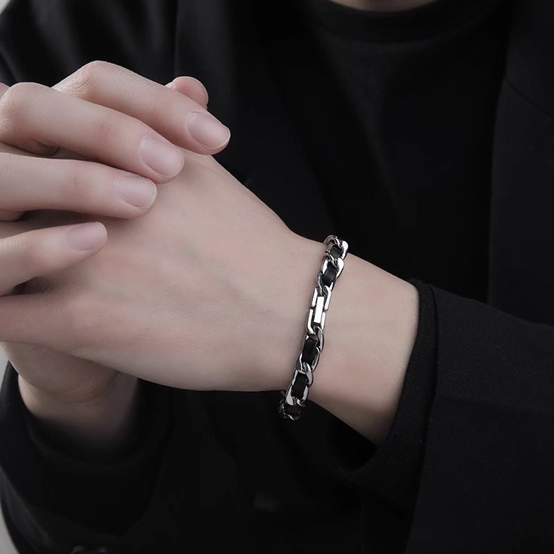 钛钢皮质手链男潮流高级感个性小众设计手饰高档手环古巴手腕配饰