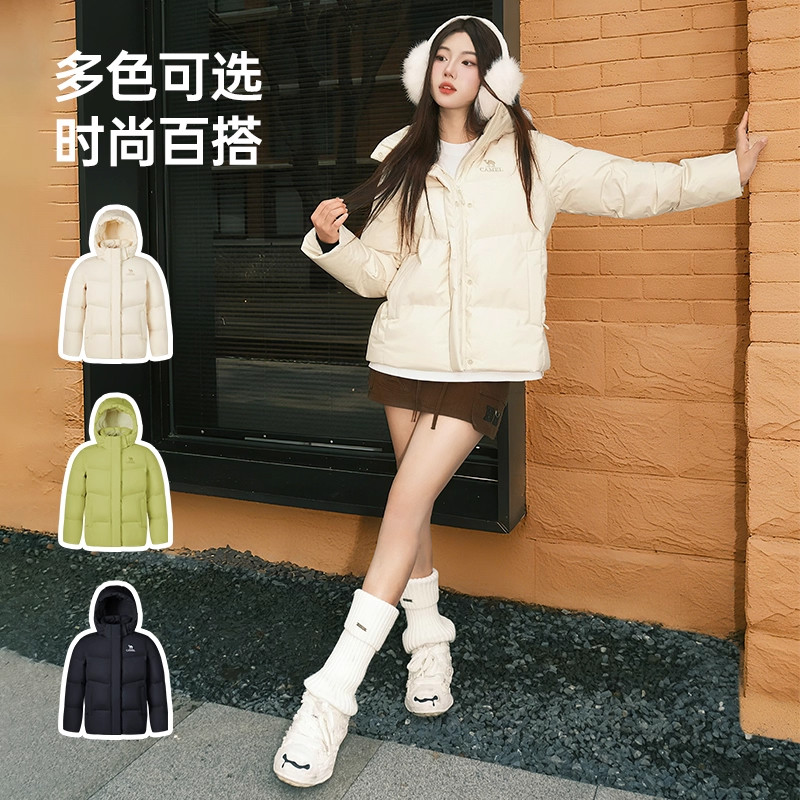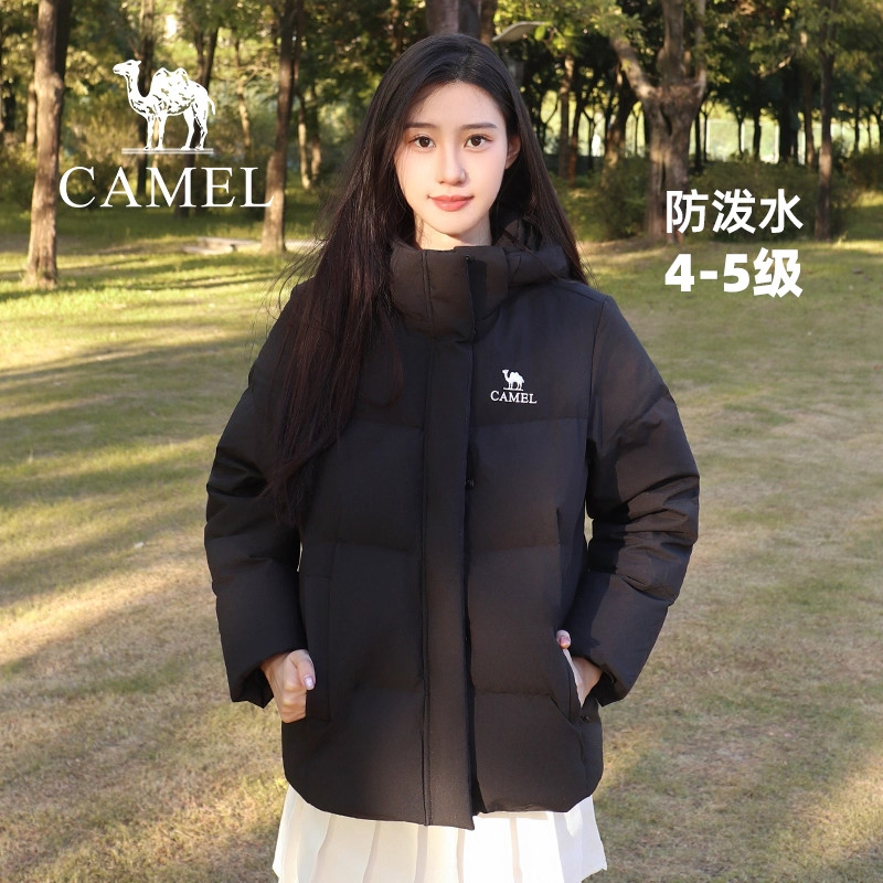 骆驼女装三防羽绒服2025冬新款杏色户外保暖面包服轻薄短款外套男
