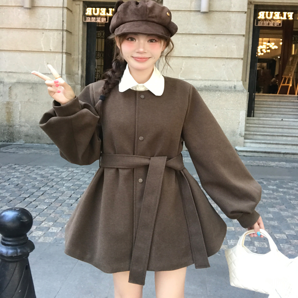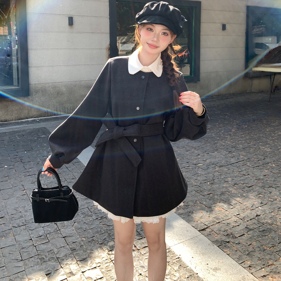 秋冬年2025巨好看毛呢连衣裙女灯笼袖圣诞新年红色氛围感呢子外套