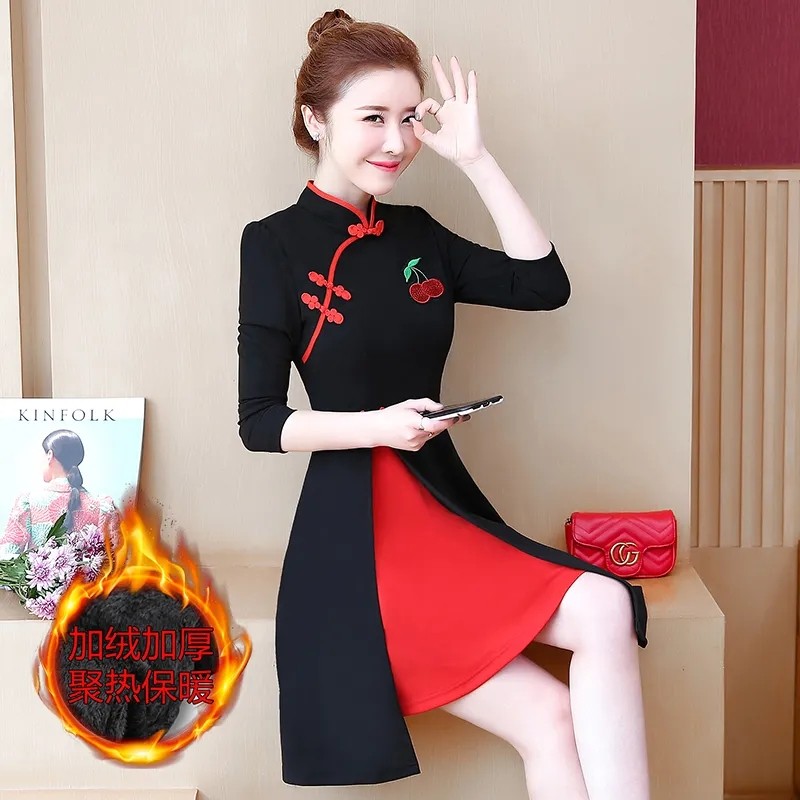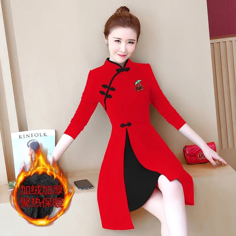 改良旗袍大码女装300斤裙子中国风复古2024春秋冬季中长款连衣裙
