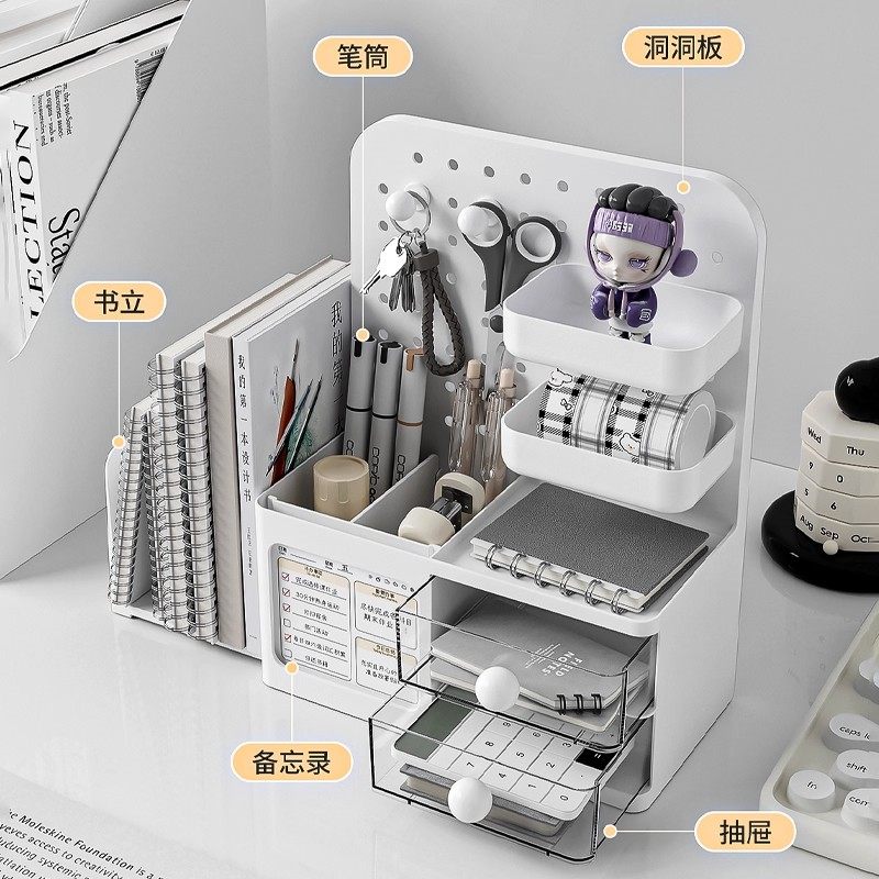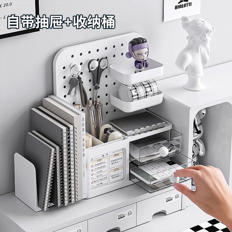 桌面收纳盒洞洞板抽屉式学生书桌整理展示架笔筒工位办公桌置物架