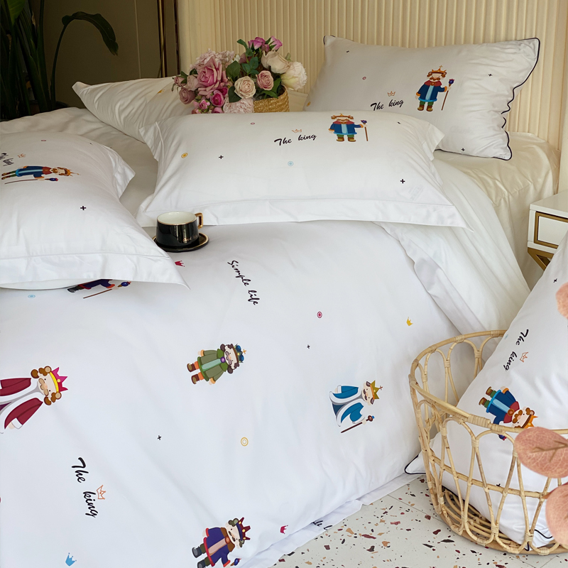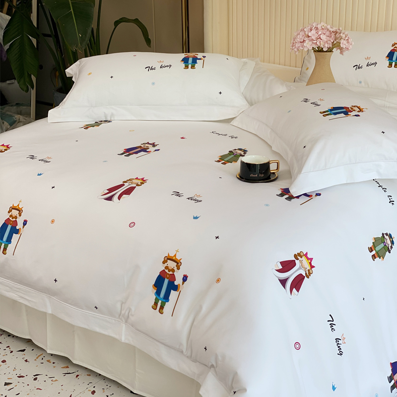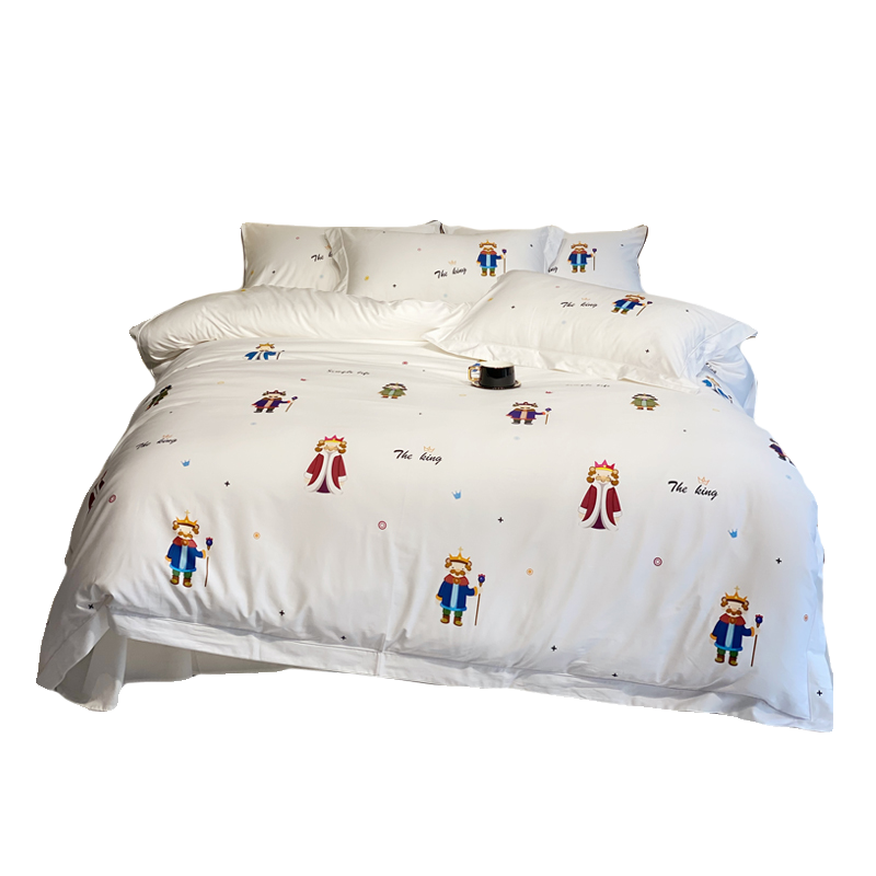 卡通儿童120支匹马棉贡缎印花四件套全棉亲肤丝滑四季床单床品1.5