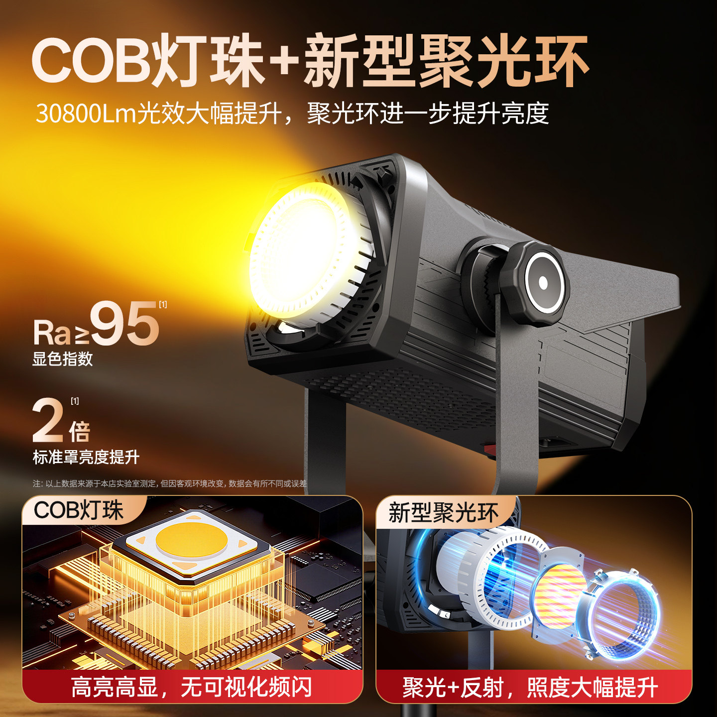 COB专业300W大功率直播补光灯主播拍摄带货专用摄影灯直播间全套设备人像拍照常亮太阳灯室内球形深口柔光箱