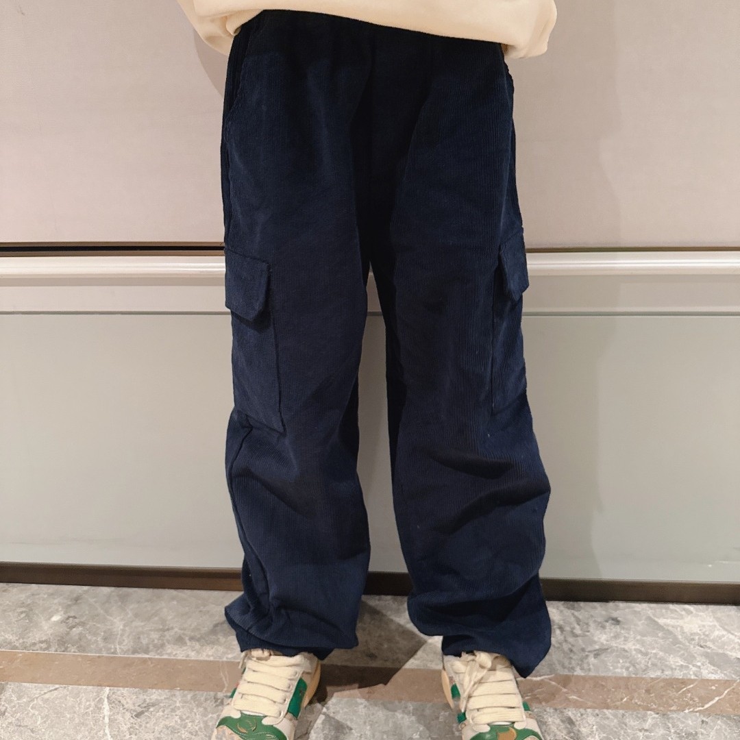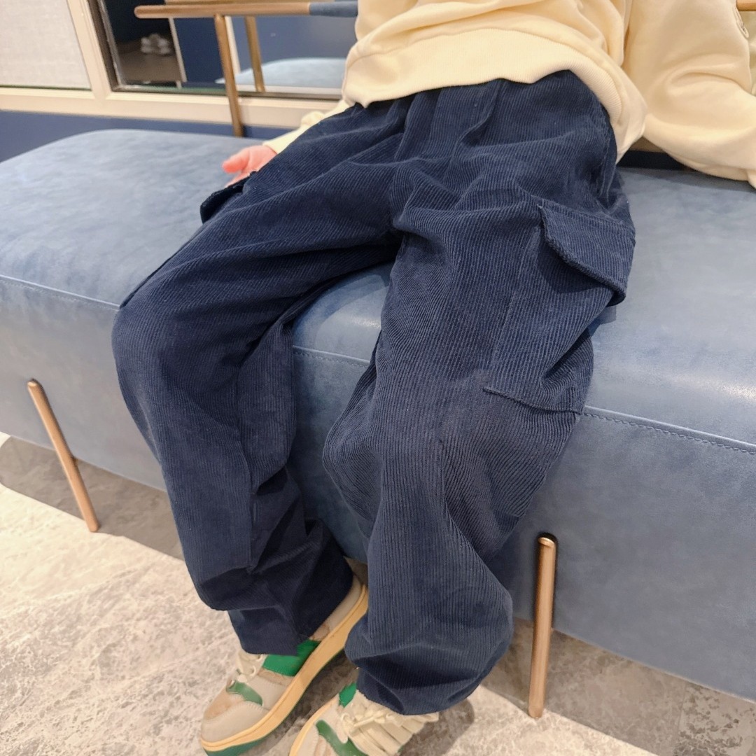 小章仔灯芯绒加厚加绒口袋工装裤长裤男女童秋冬打底裤休闲裤宝宝
