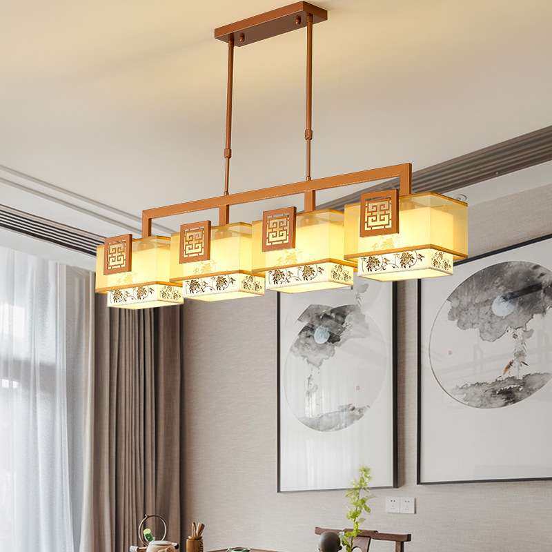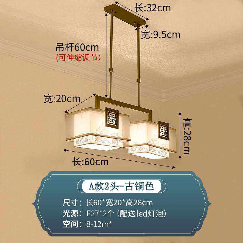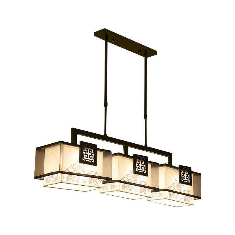 吊灯长方形三头饭厅餐吊灯中国风禅意家用餐厅灯具新中式家居青花