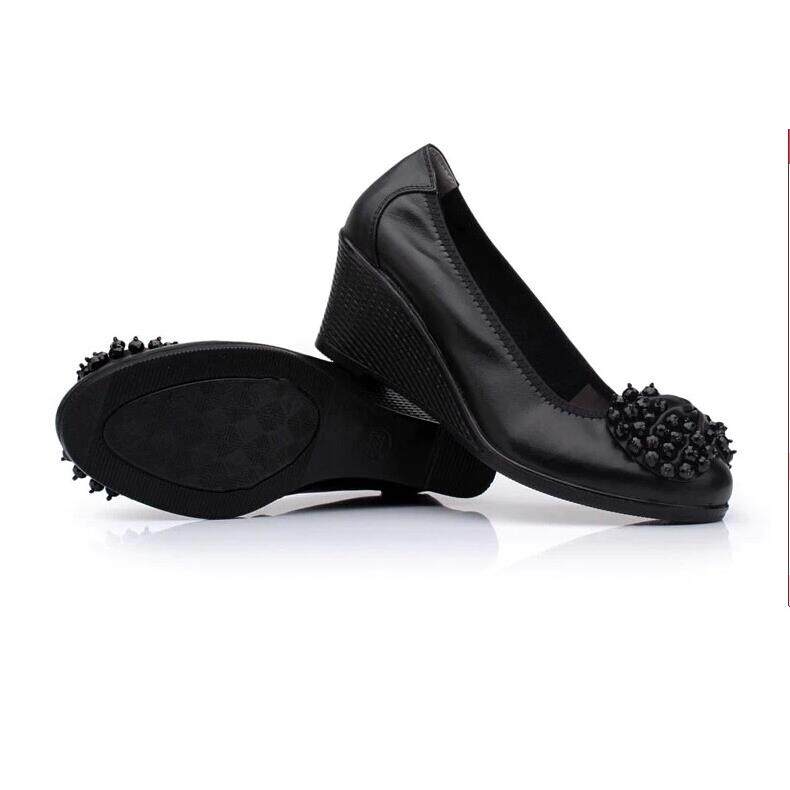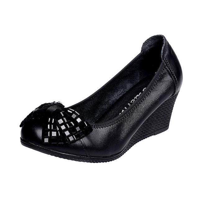 高档女春季真皮妈单鞋中老年中跟坡跟士妈皮鞋浅口软大码底圆头春