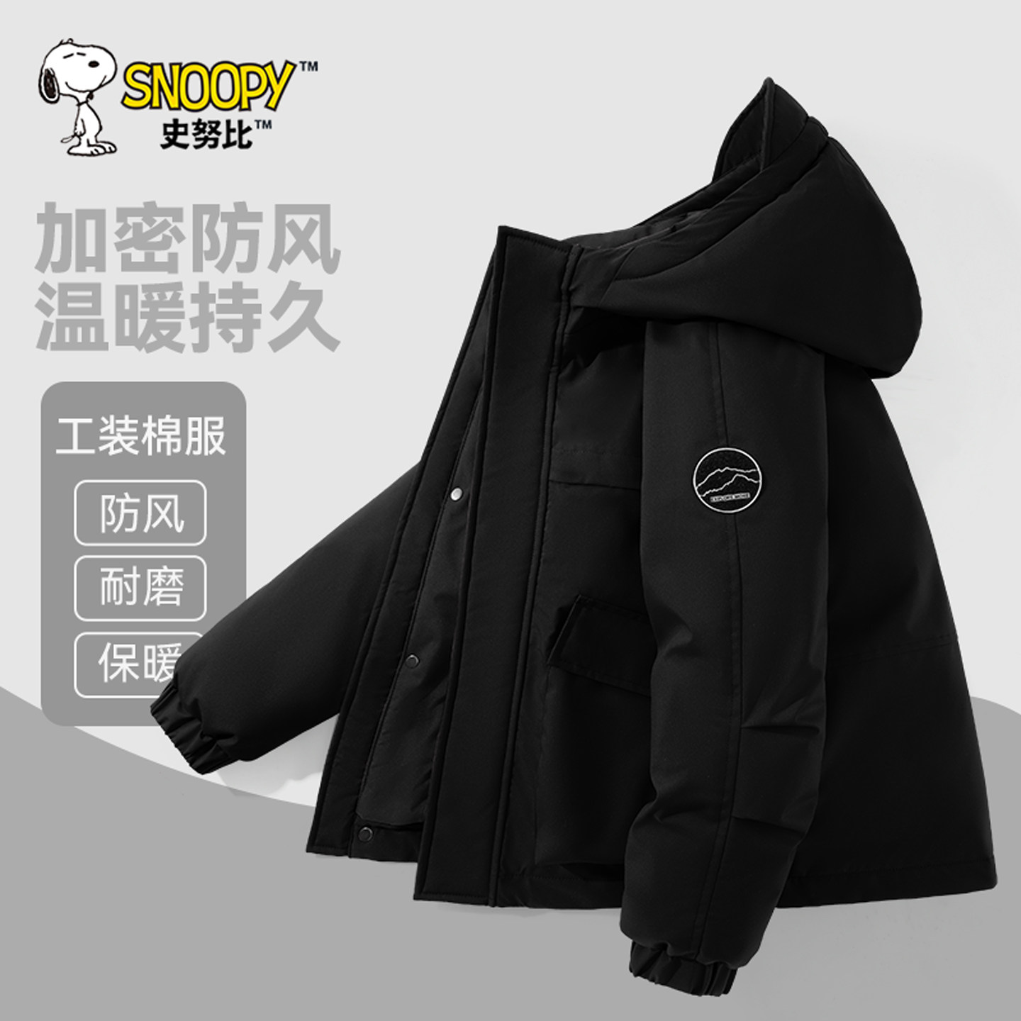 史努比童装女童棉服2026新款冬装男童红色棉袄儿童加厚工装外套冬