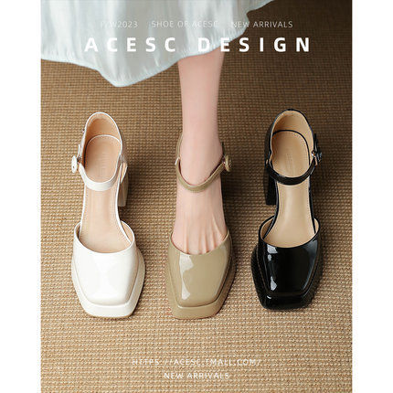 【清仓】艾斯臣凉鞋女夏季小个子法式玛丽珍一字扣带中空粗跟单鞋
