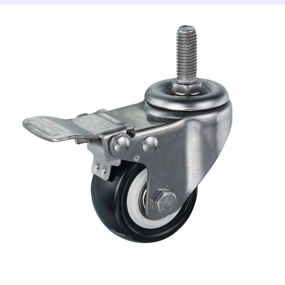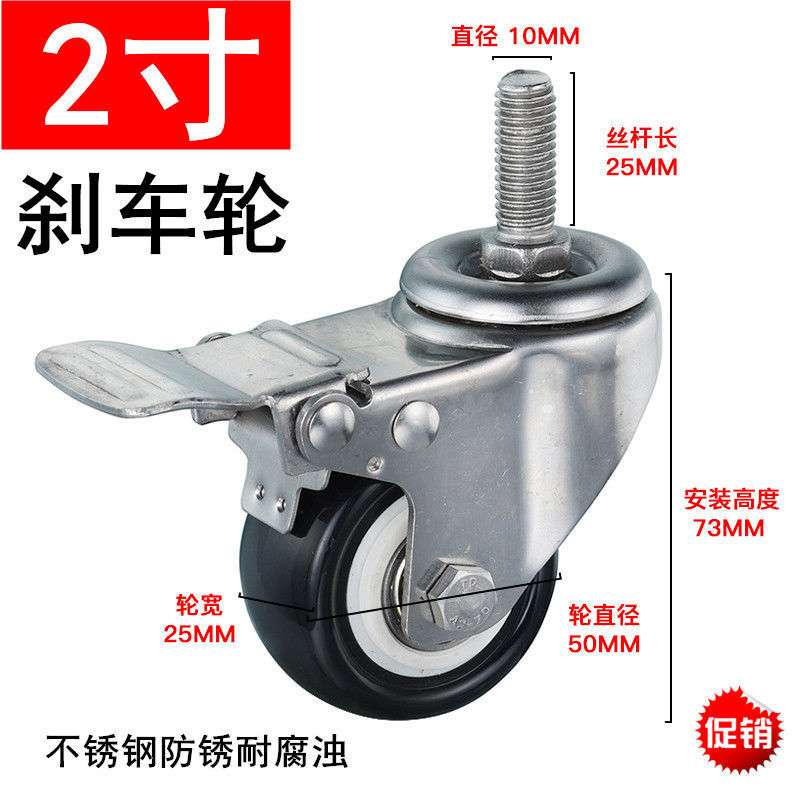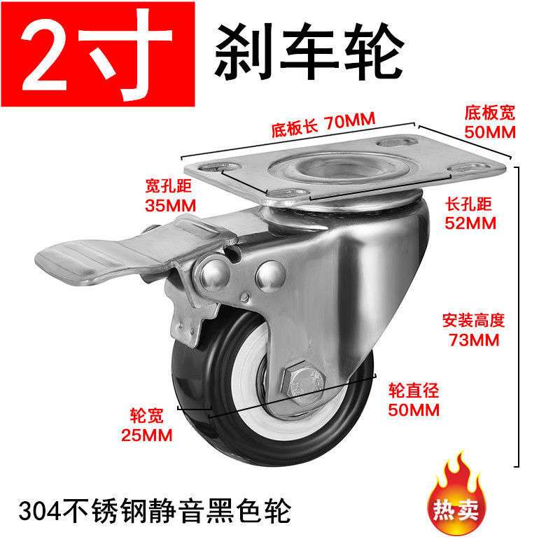 脚轮1.5寸2寸304不锈钢静音PU脚轮万向刹车定向轮工业手推车咕噜