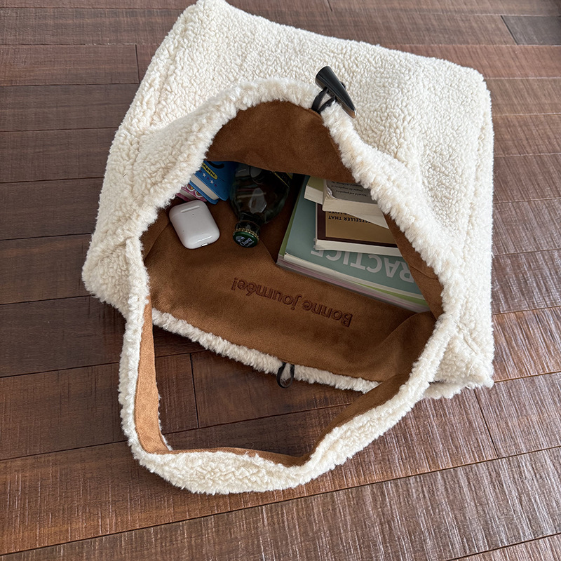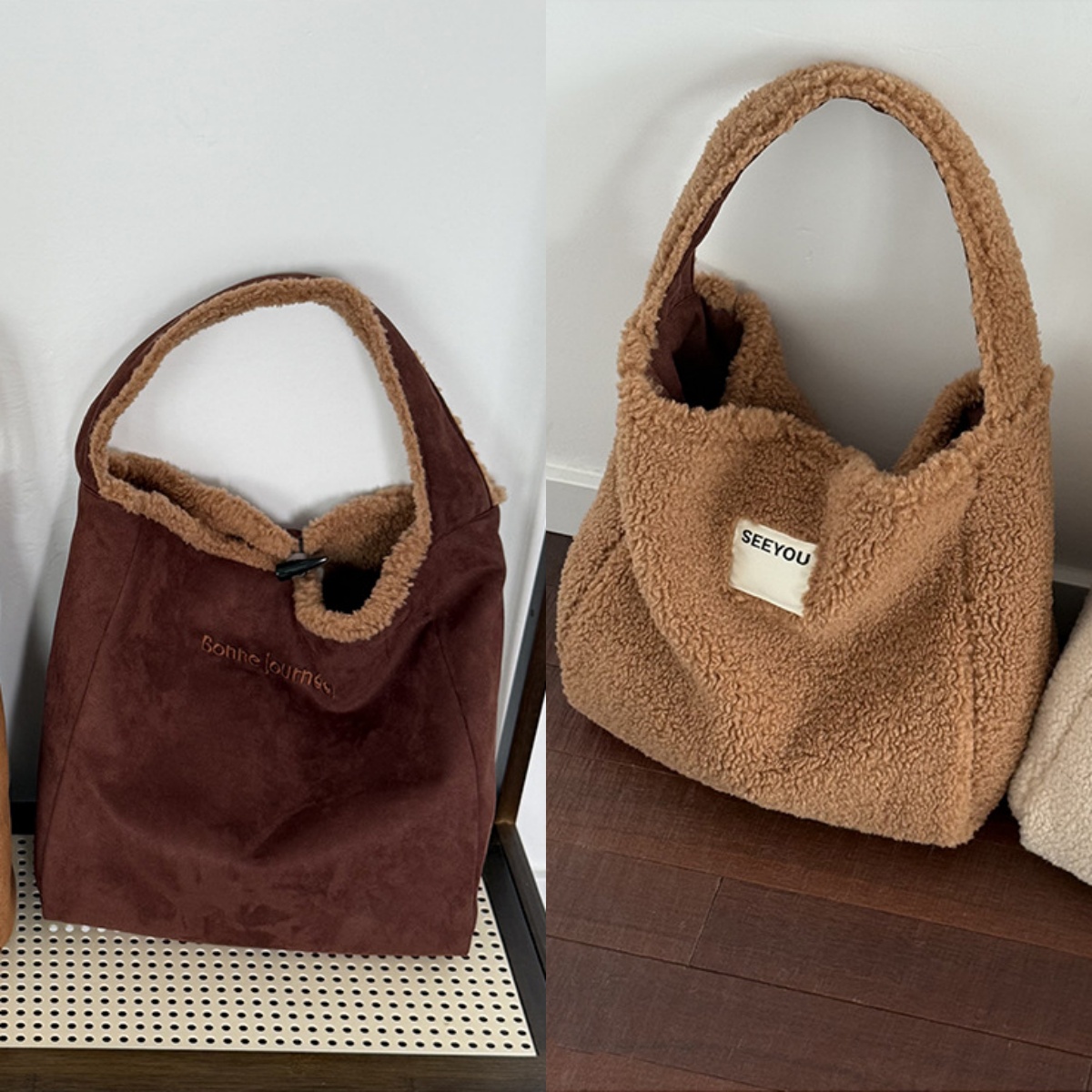 新年红色大容量毛绒包包女2024冬季新款百搭单肩包时尚通勤托特包