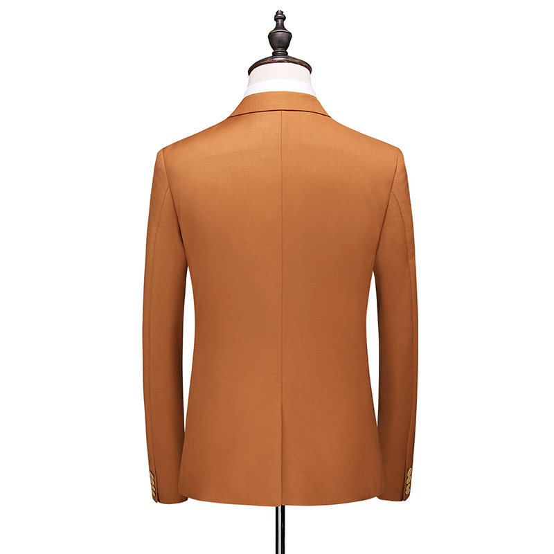 2025新款男士镂空修身大码西服三件套焦糖色帅气套装马甲西裤上衣