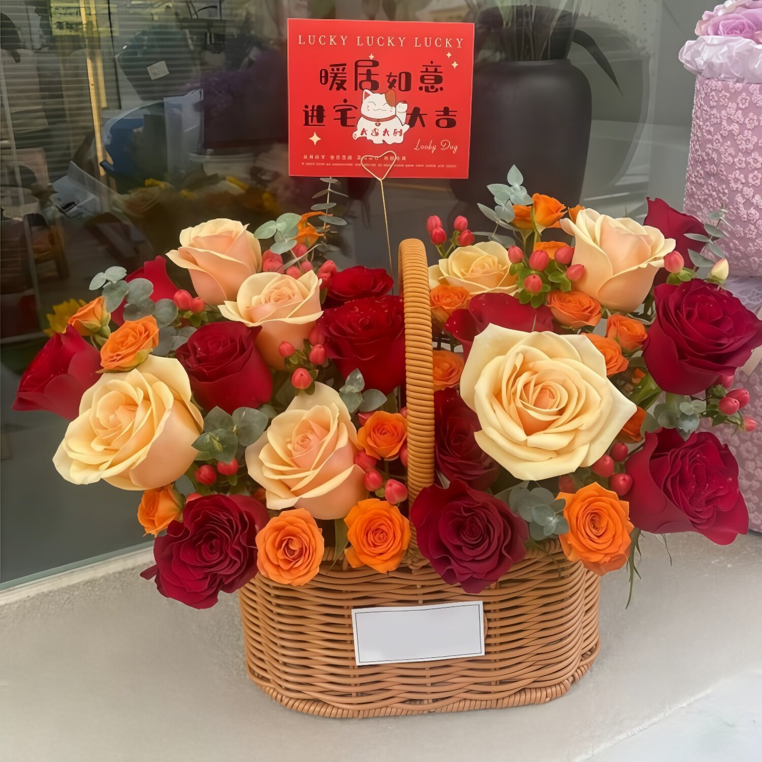 生日乔迁礼物手提篮鲜花同城配送