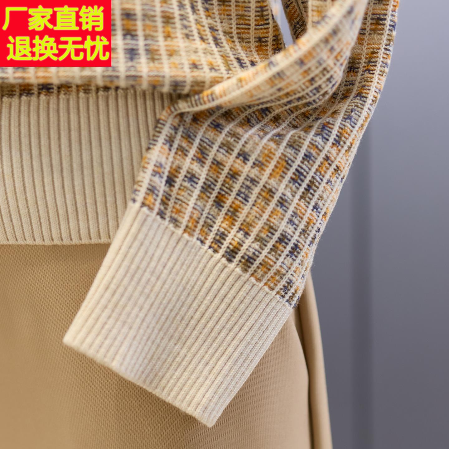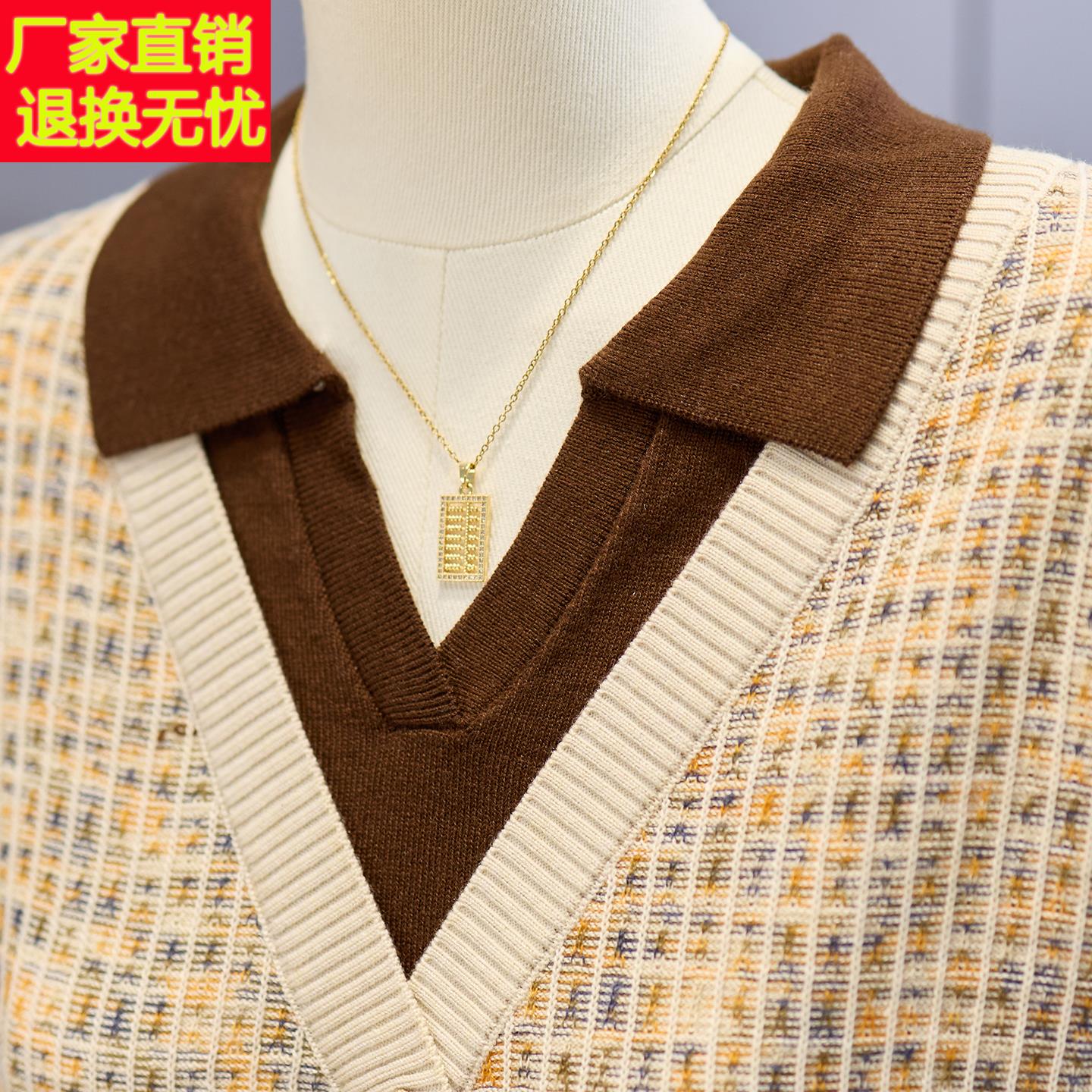 洋气妈妈秋装针织打底小衫中年女装新款假两件中老年春秋翻领上衣