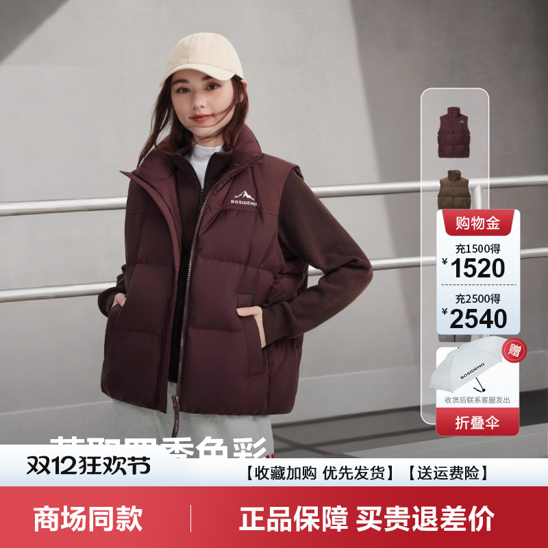 波司登2025冬新款女士短款立领羽绒马甲情侣外穿羽绒服B250246370