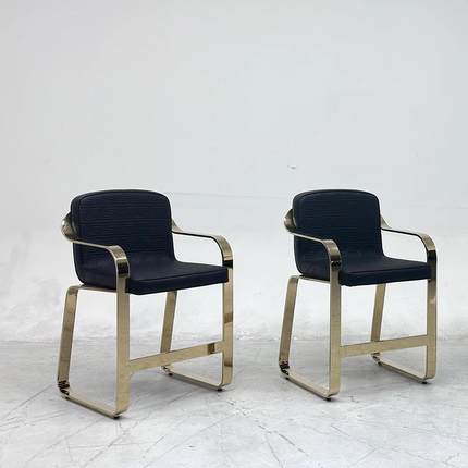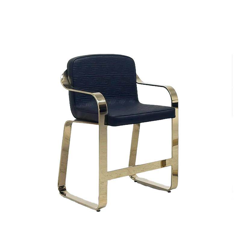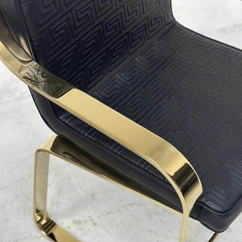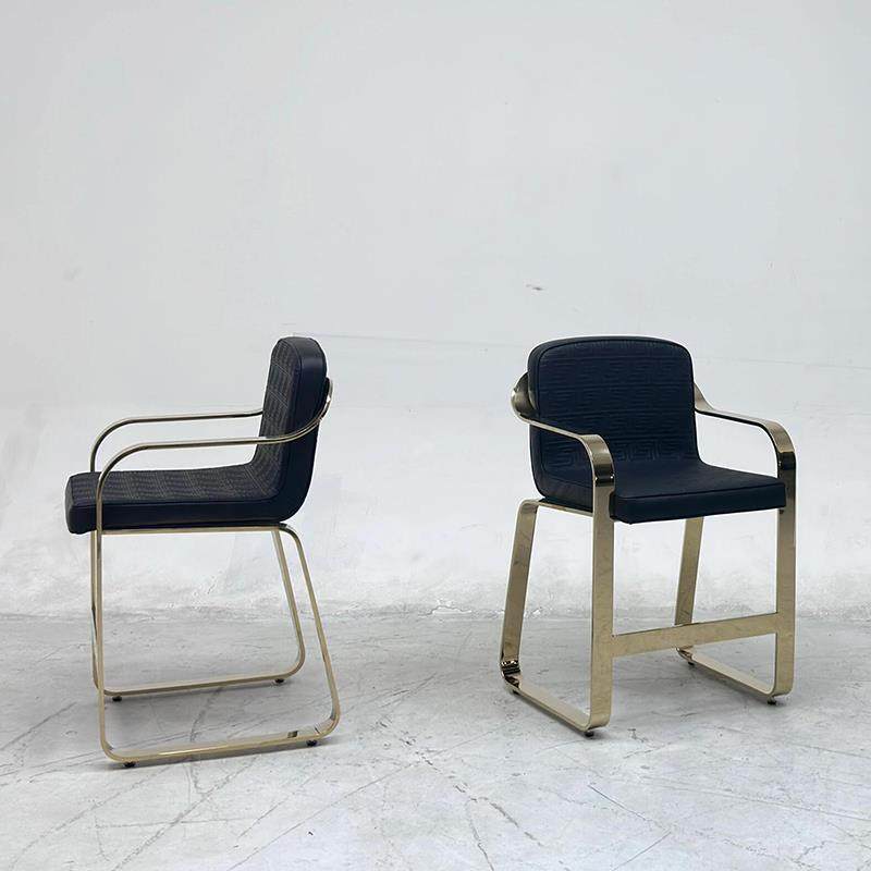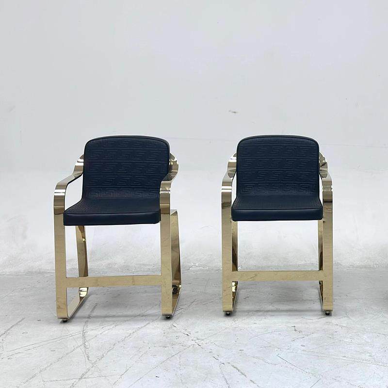 Versace casa高级单人椅意式轻奢设计金属不锈钢金色真皮布艺餐椅