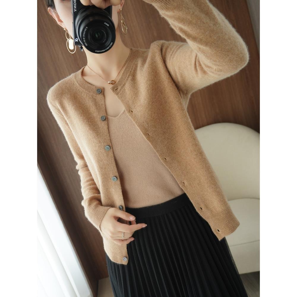 2025年新款秋季羊毛衫女100 纯羊毛开衫外套针织打底羊绒毛衣外搭