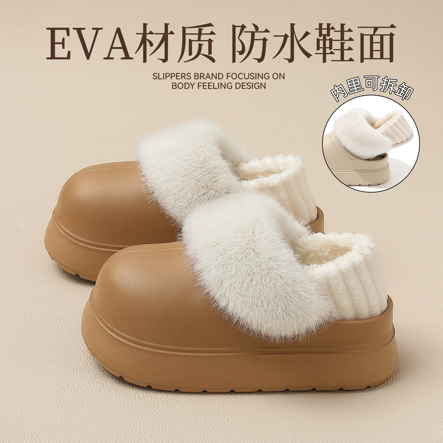 可拆卸棉拖鞋女款冬季