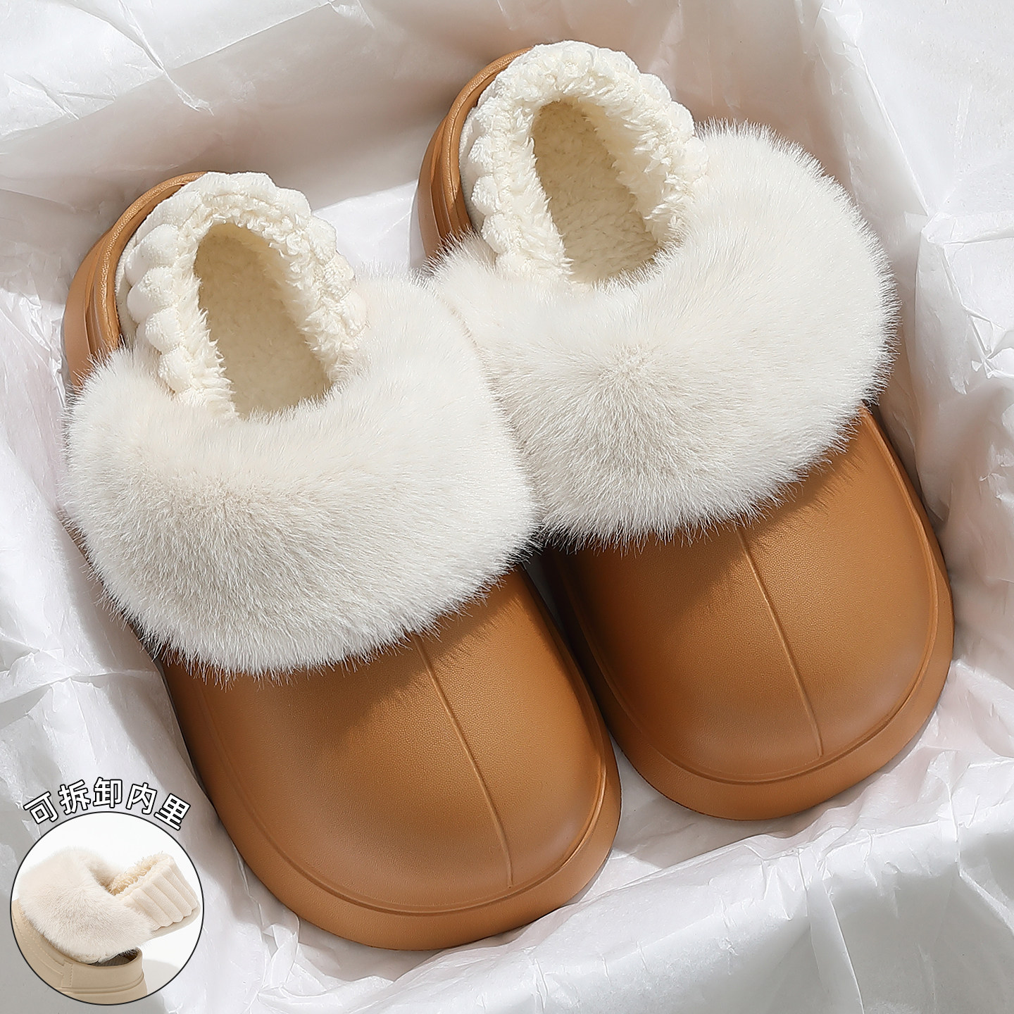 可拆卸棉拖鞋女款冬季2025新款室内家居保暖防滑防水厚底加绒棉鞋