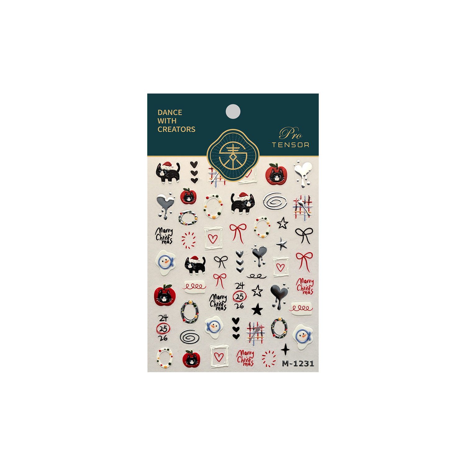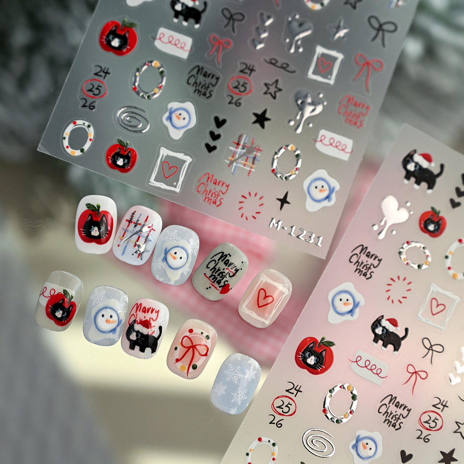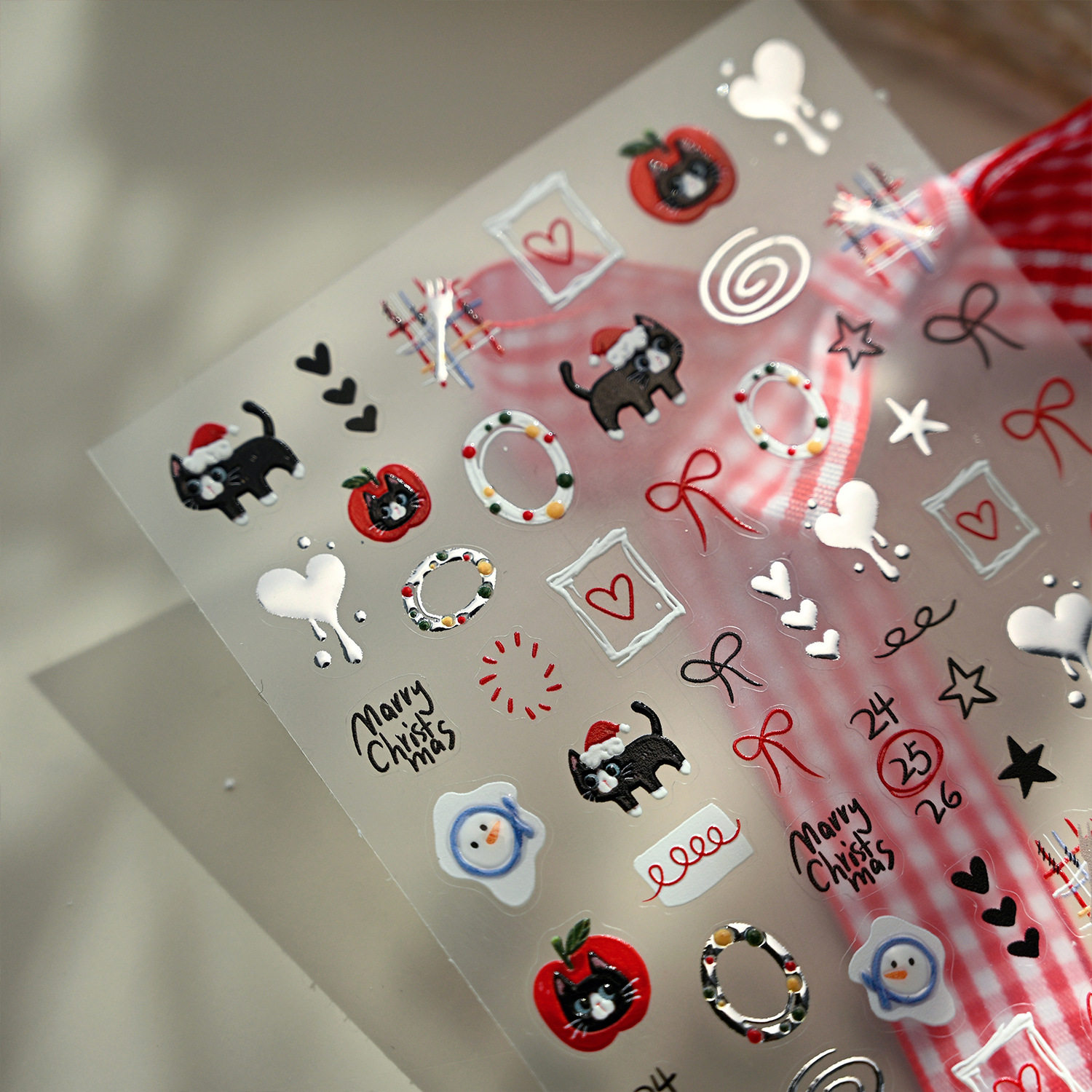 卡通可爱黑猫红苹果金属立体美甲贴纸装饰指甲电脑手机壳ipad贴画