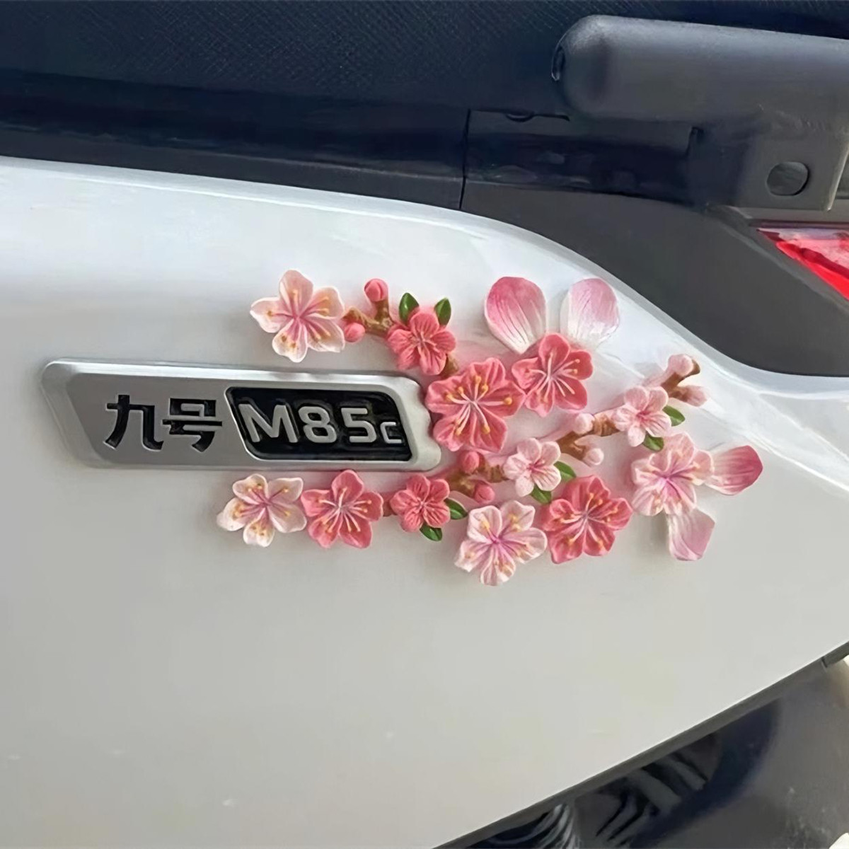 适用九号M95c/Q85c/80C电动车贴纸仿真桃花装饰配件3D立体划痕贴