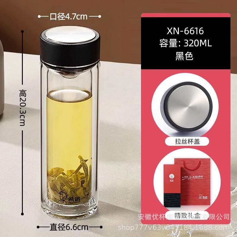 希诺6617新品双层隔热防烫玻璃杯男女士商务泡茶杯家用办公杯子