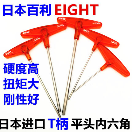 日本进口EIGHT百利T型内六角扳手加长T柄平头螺丝刀018L-2.53468m