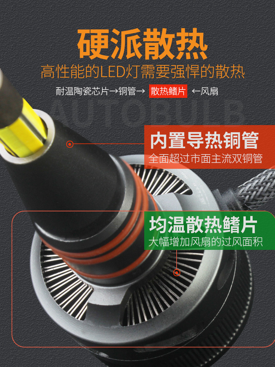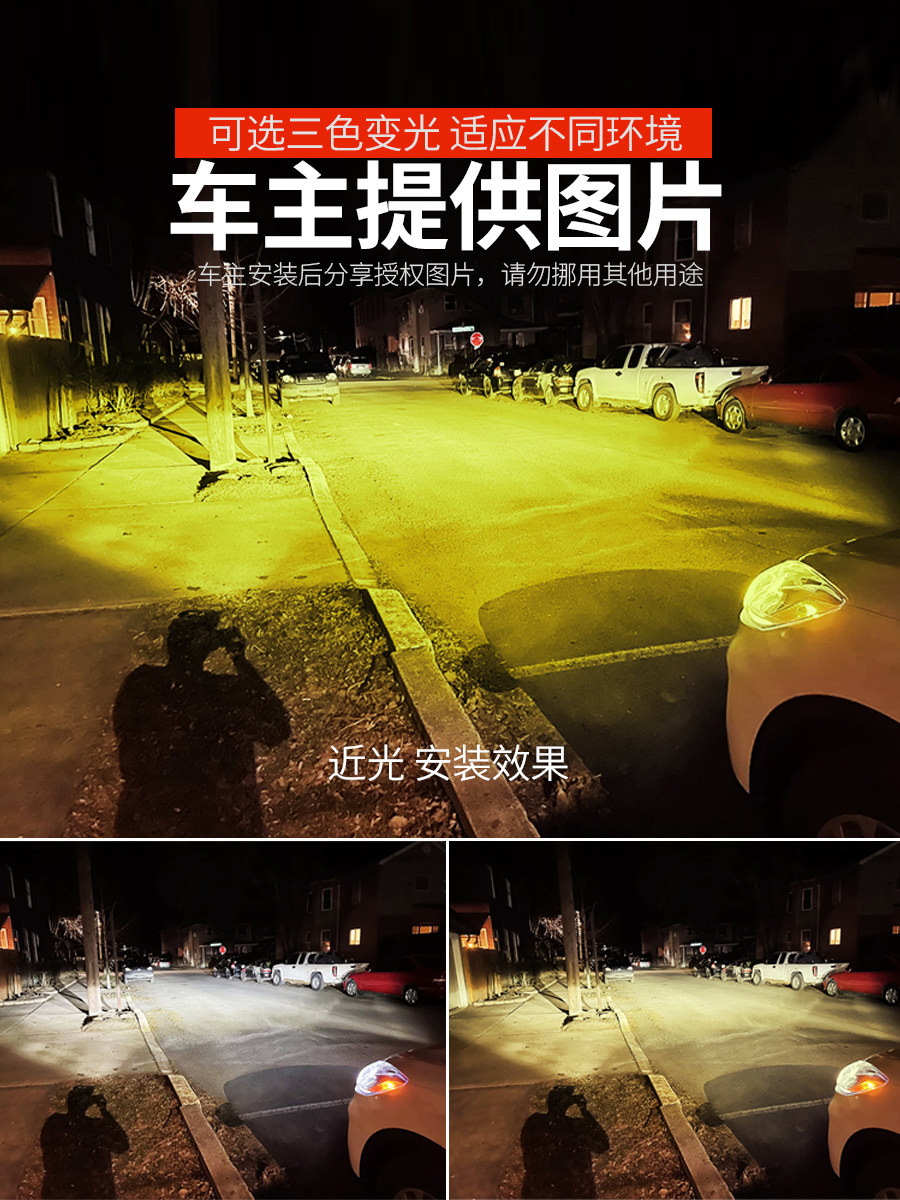 三色汽车LED大灯灯泡360度前雾灯12V24V大货车远光H1近光灯H7 H11