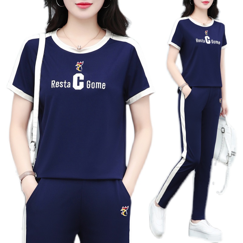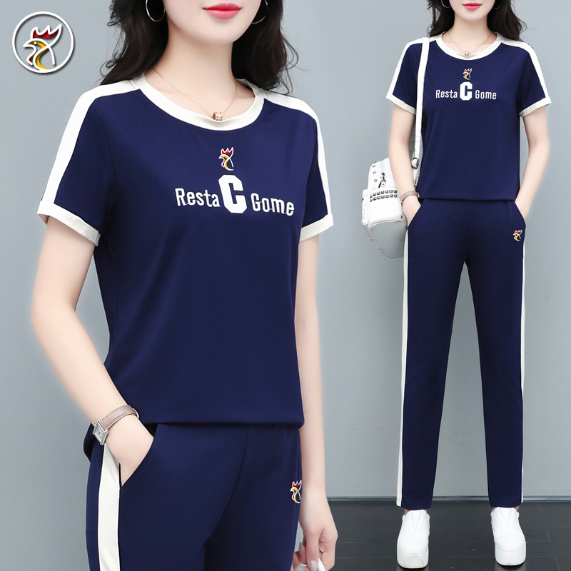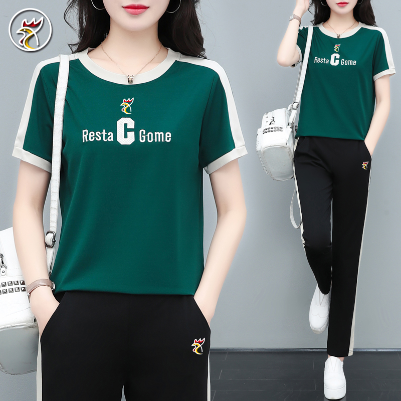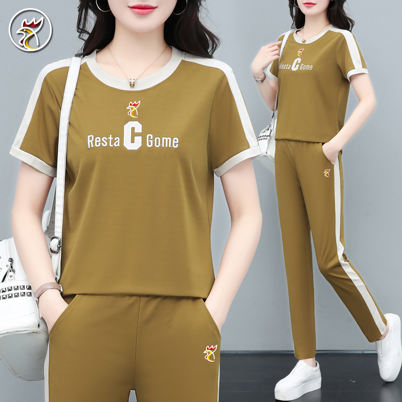 【品牌】冰丝短袖套装女士夏季薄款速干透气跑步运动服大妈两件套