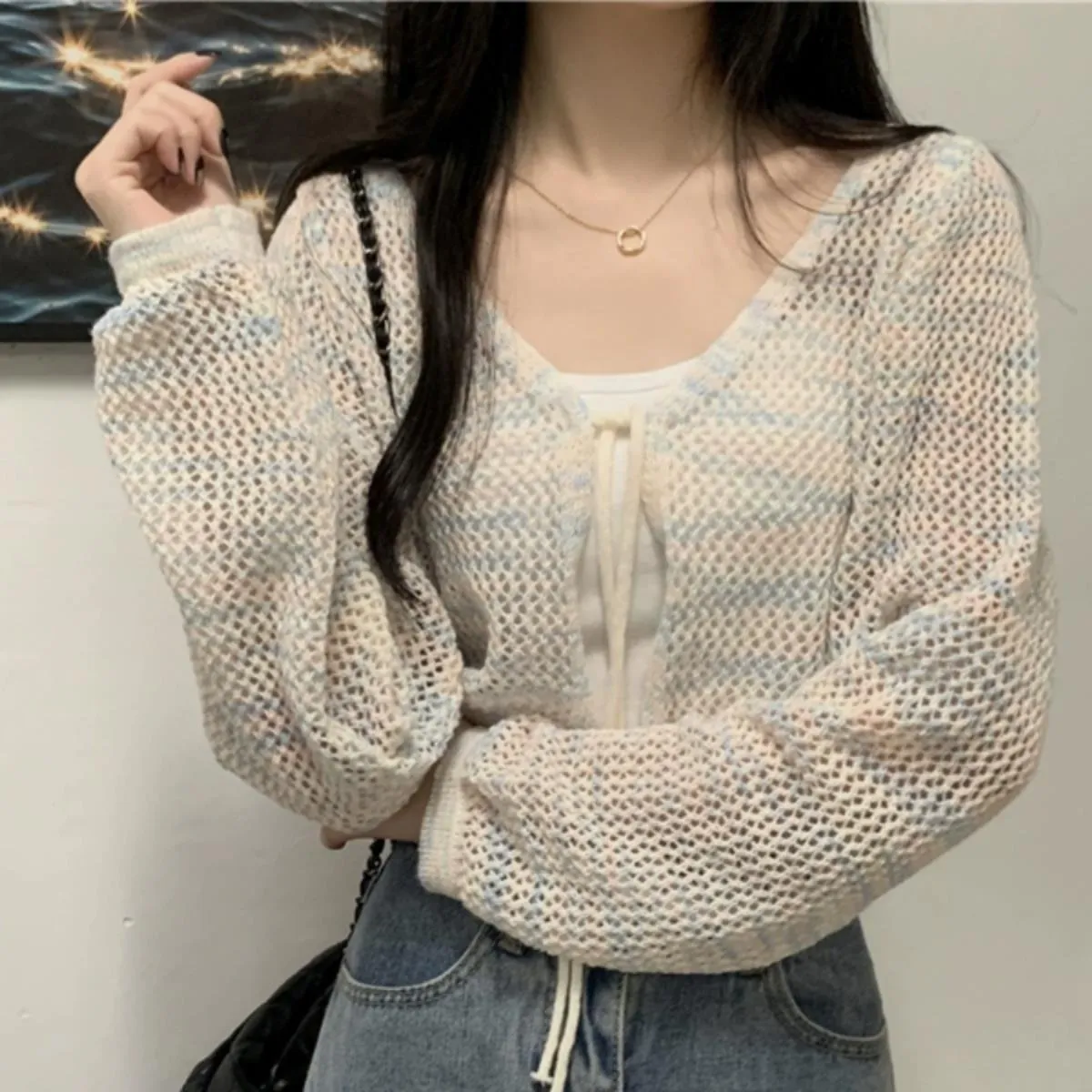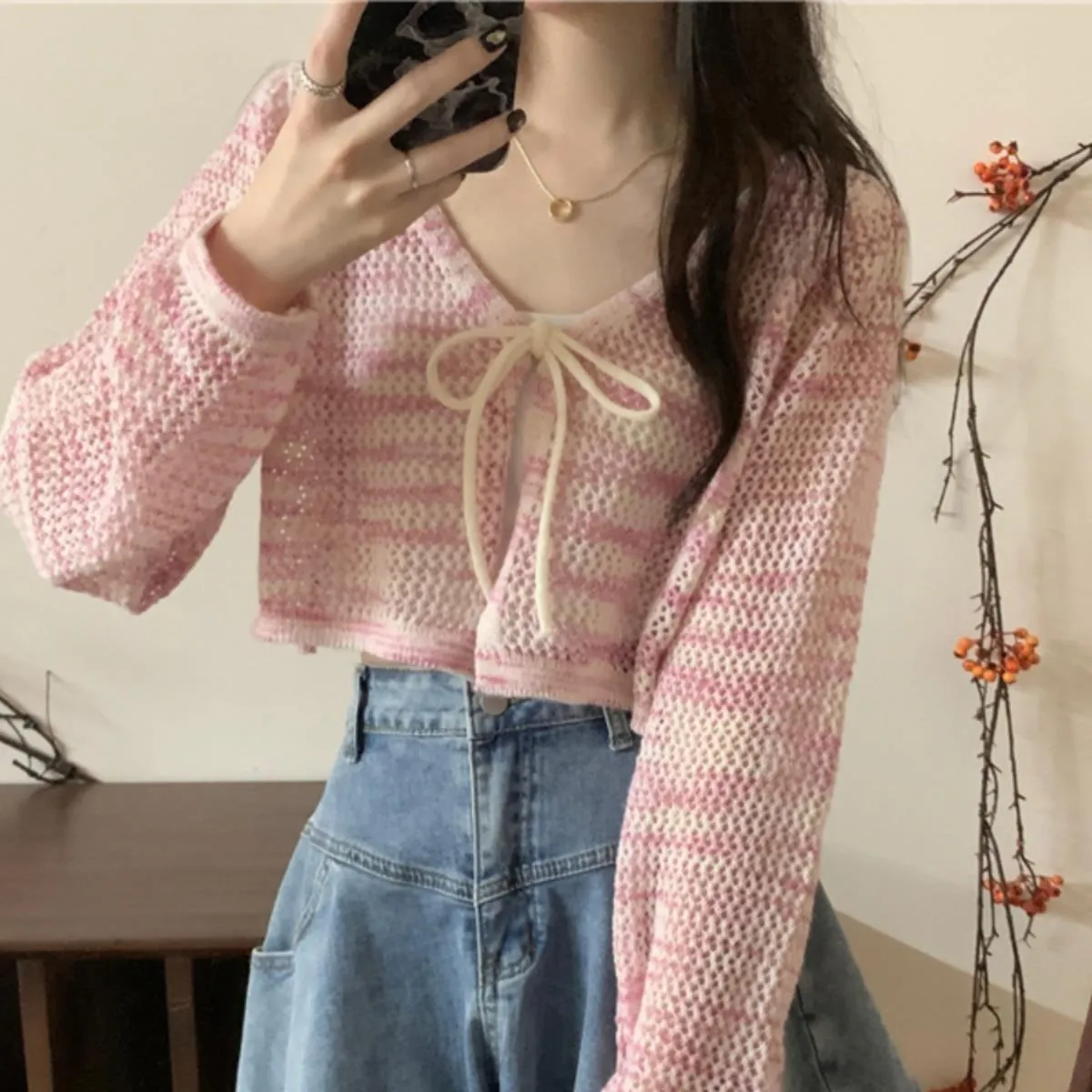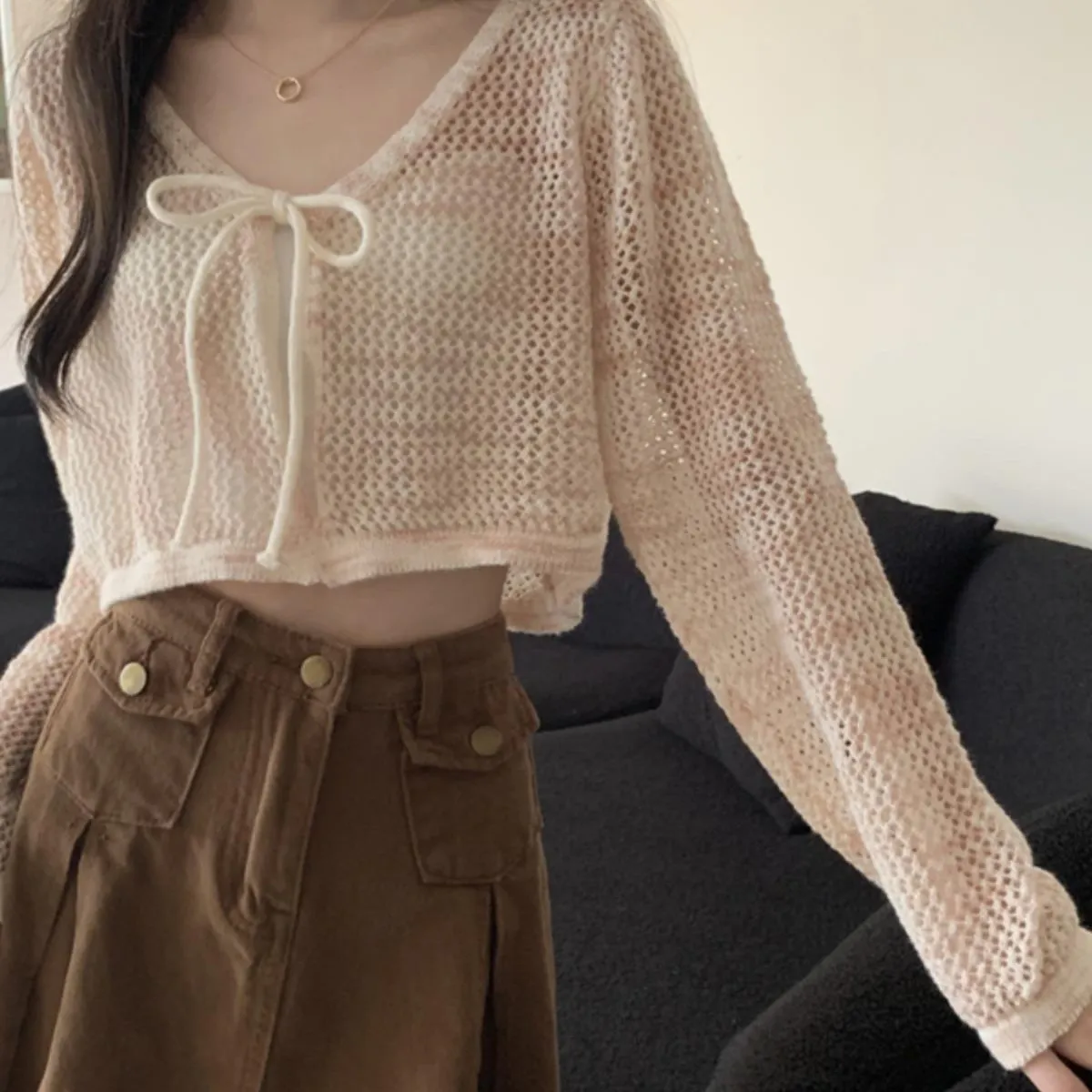 v领短款针织防晒开衫女夏季新款披肩外搭薄款镂空小罩衫外套上衣
