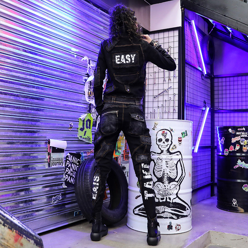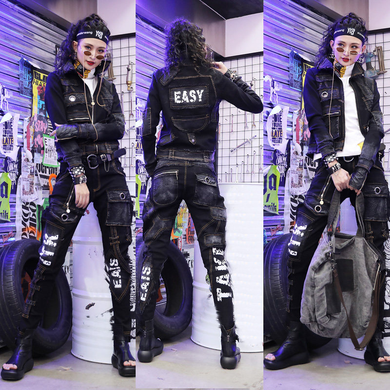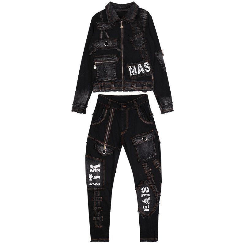 街头2025春秋酷飒风欧货个性女装时尚牛仔套装女帅气哈伦裤两件套