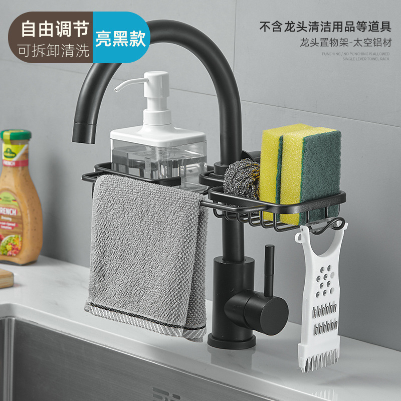 厨房收纳架水龙头置物架免打孔太空铝水槽池海绵抹布杂物沥水挂篮