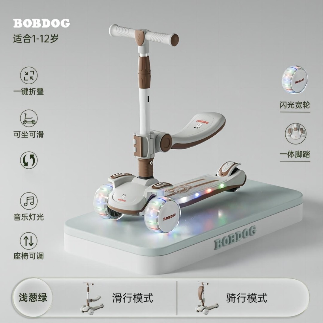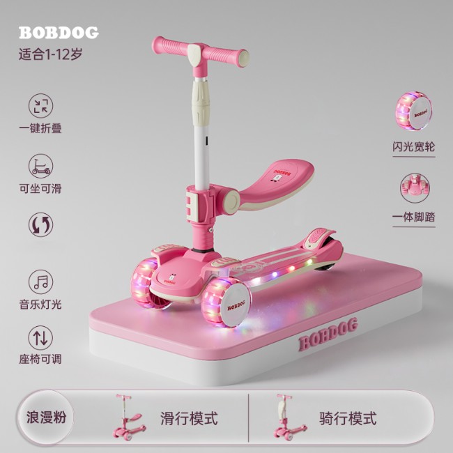 Bobdog/巴布豆滑板车儿童可坐可滑溜溜车1-3-12男女玩具车初学者2