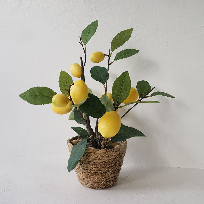 仿真柠檬树果枝柿子水果盆栽客厅电视柜餐桌假花仿生插花装饰摆件