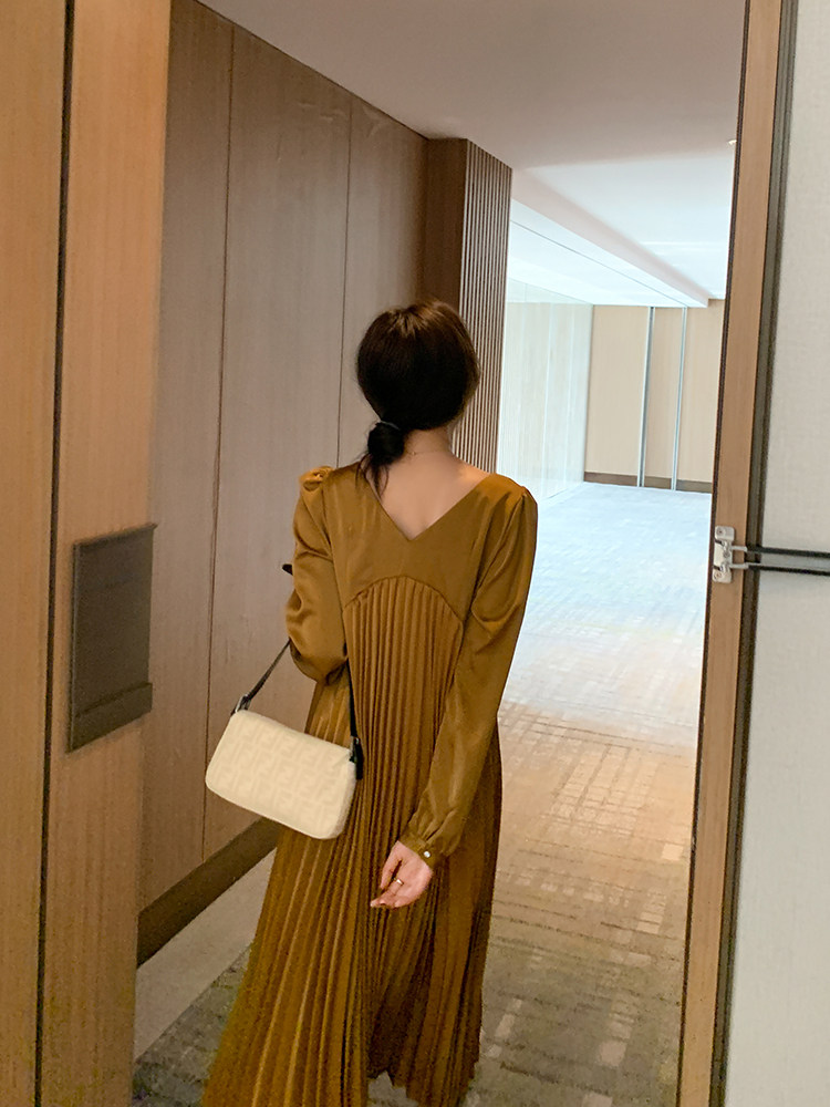 ◆AMUM孕妇装◆知性私服~时髦V领百褶裙子 法式浪漫中长款连衣裙