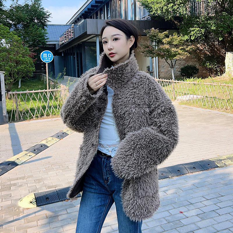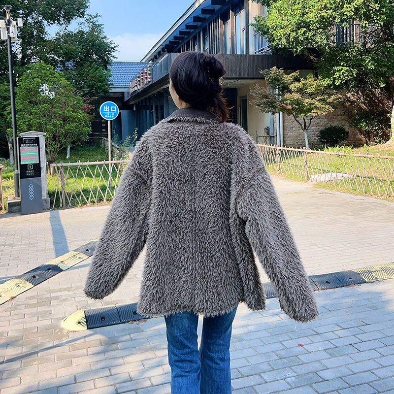 幂柚MU环保皮毛一体外套女中长款冬季双面穿羊羔毛加厚复古皮衣