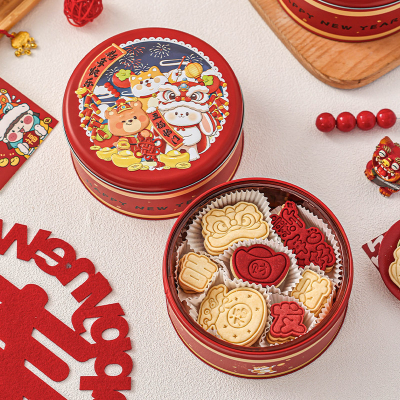 新年曲奇饼干包装盒烘焙2026新款年太妃礼物糖果雪花酥零食马口铁