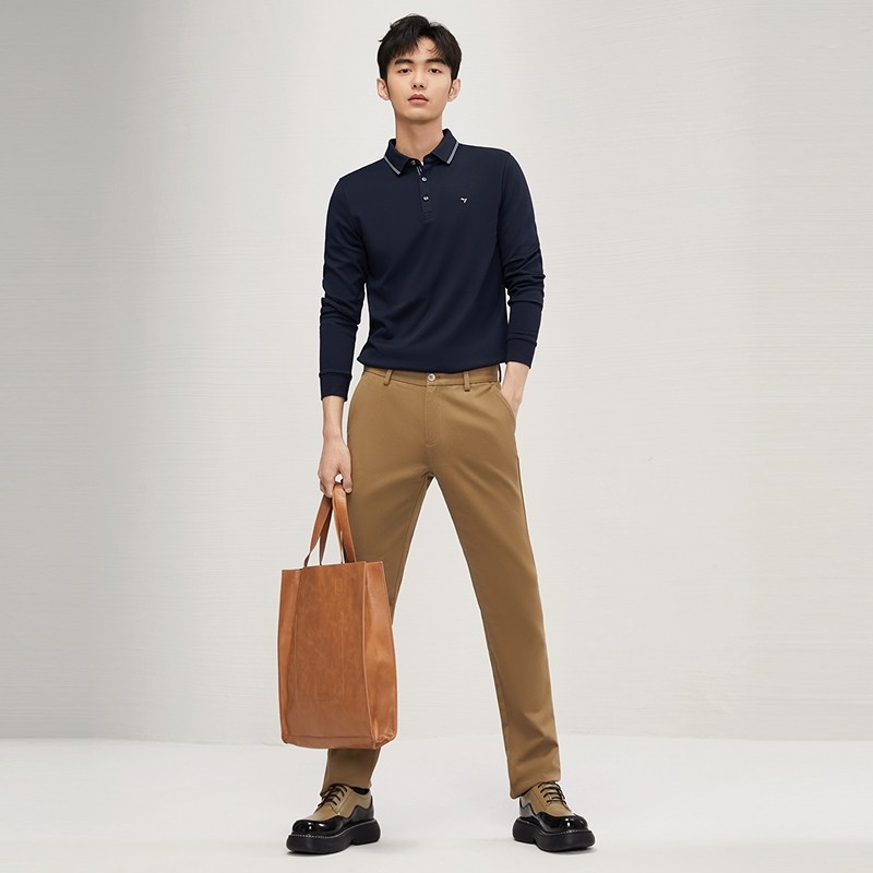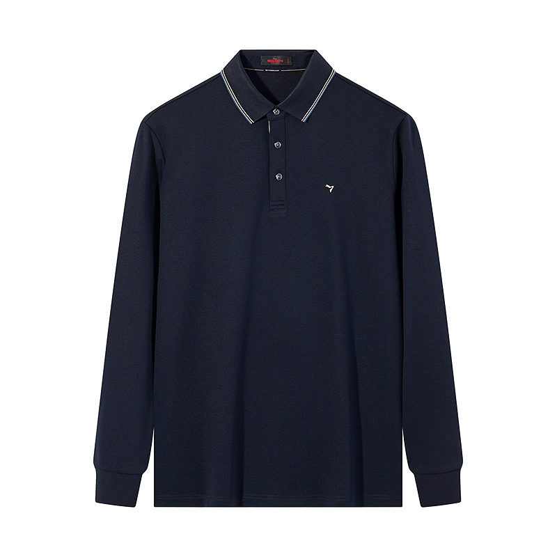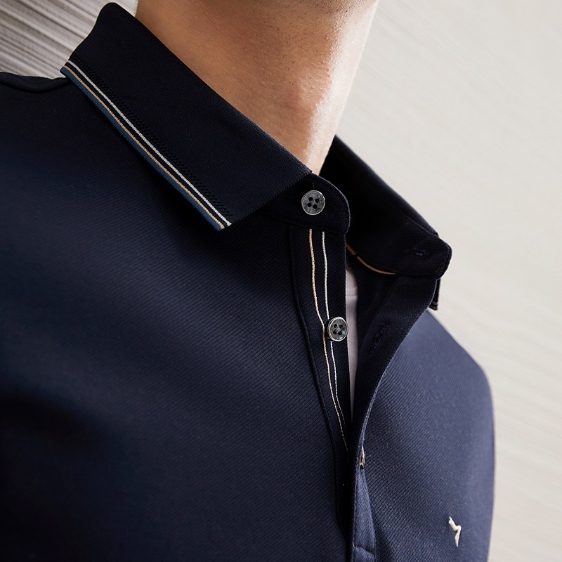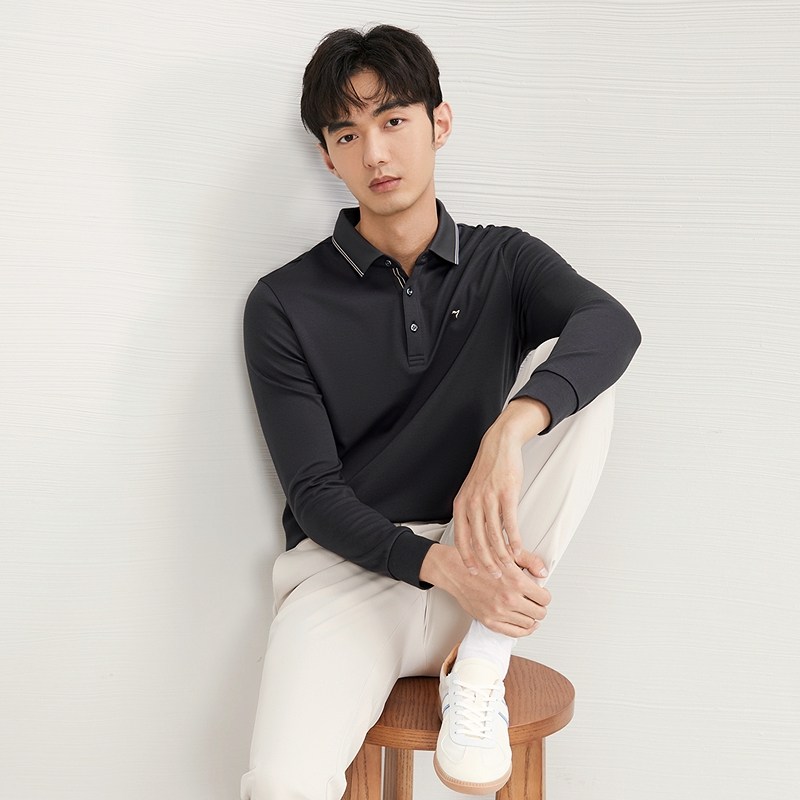 【含羊毛】柒牌男士长袖Polo衫2024秋冬新款商务简约磨毛翻领T恤