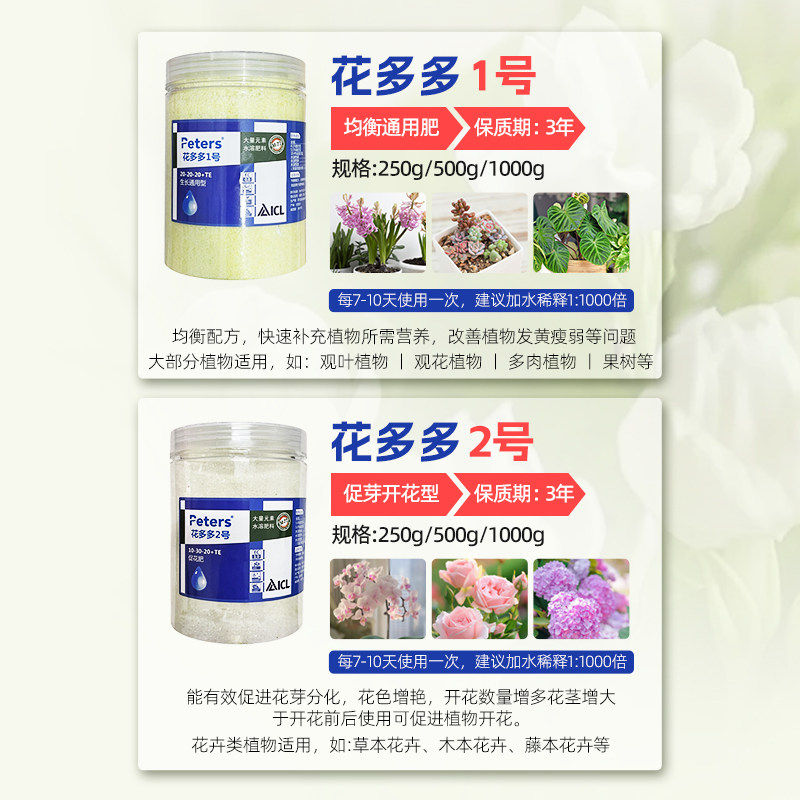千百季旗舰店花多多1号2号水溶肥月季绣球促开花通用型进口花肥