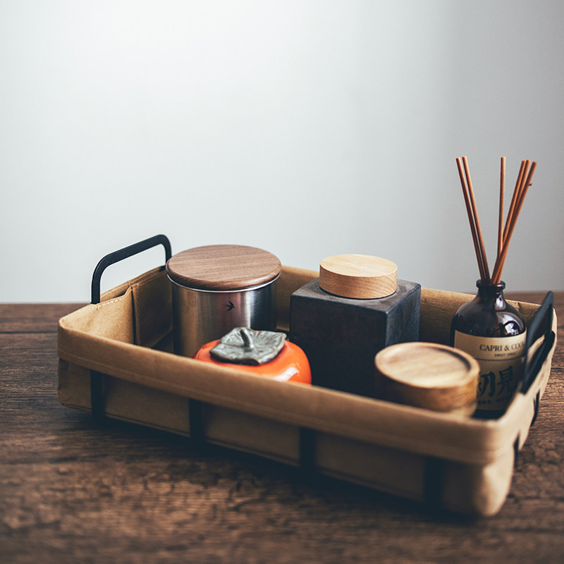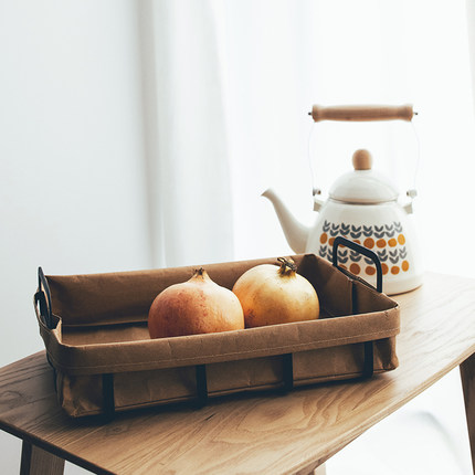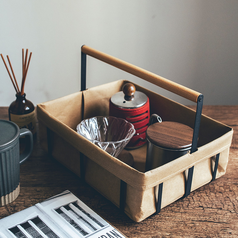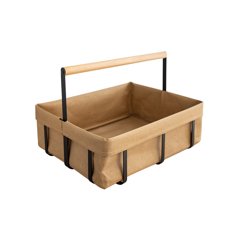 半宅可水洗牛皮纸收纳篮露营桌面零食玩具水果面包篮杂物铁艺提篮