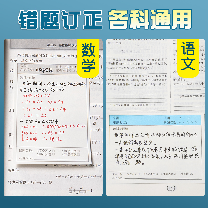 英语便利贴初中生专用便签本有粘性单词听写英语口语贴纸错题改错修改贴课堂笔记作业订正小学生四五六三年级