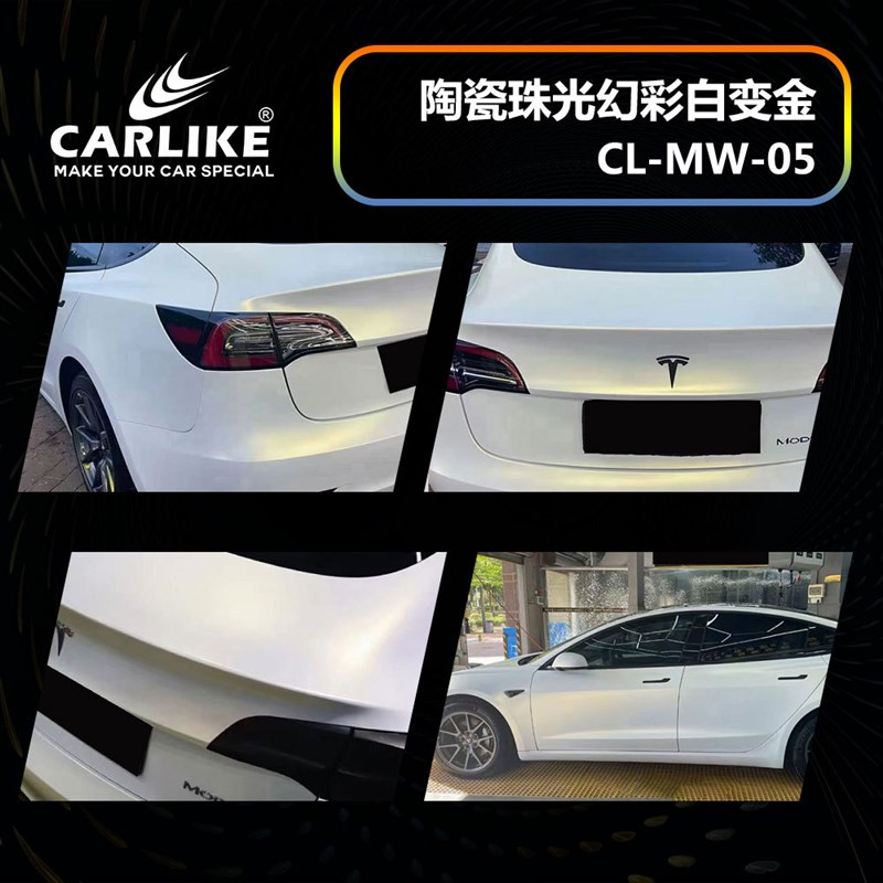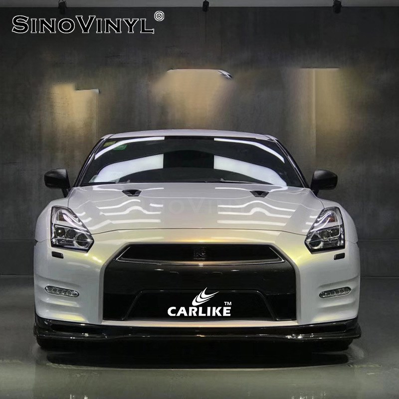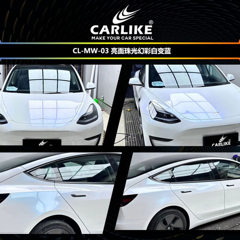 卡莱克珠光幻彩白变色汽车改色膜亮面白幻彩珠光膜白变蓝车身贴膜