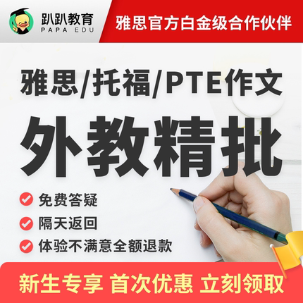 趴趴雅思作文写作批改托福写作批改pte写作批改外教精批预测网课