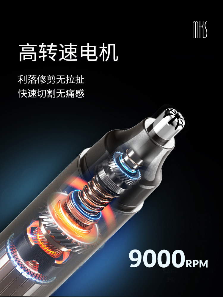MKS电动鼻毛修剪器男女用剃鼻毛剪鼻孔清洁器修剃鼻毛修剪充电式