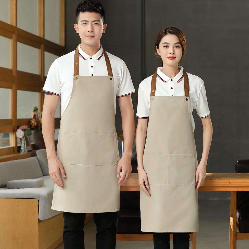 绿色帆布围裙定制logo餐饮酒店西餐厅咖啡店后厨房服务员工作服女