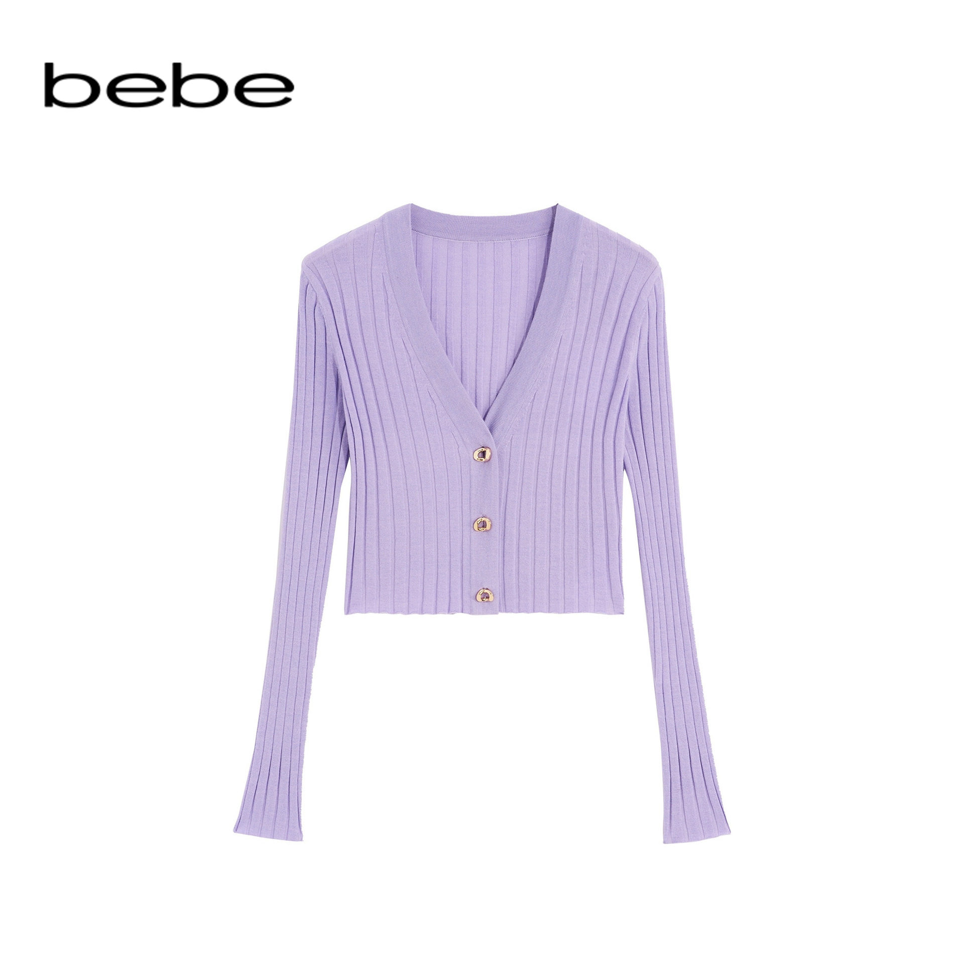 bebe夏季新款V领薄款针织开衫