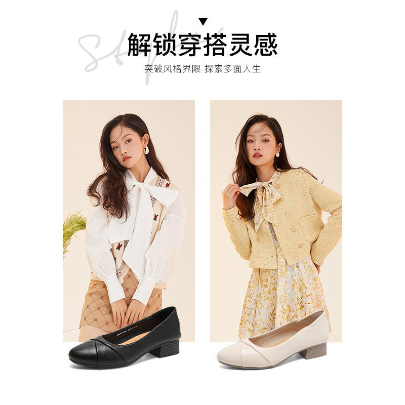 大东女鞋2025秋季新款尖头职业女单鞋低跟通勤工作鞋浅口小皮鞋